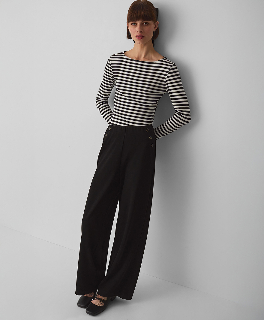 Zauważalny w kolekcji powrót do estetyki lat 90. to nie tylko ukłon w stronę nostalgii, ale przede wszystkim świadome nawiązanie do okresu, który charakteryzował się wyjątkową swobodą w modzie. Trend ten przejawia się w oversizowych bluzach, które świetnie sprawdzają się zarówno w casualowych stylizacjach, jak i w połączeniu z eleganckimi elementami garderoby. Wysokie spodnie z szerokimi nogawkami nie tylko nawiązują do tamtej epoki, ale także doskonale wpisują się w obecne trendy dotyczące wygody i uniwersalności. Crop topy, kolejny charakterystyczny element lat 90., zostały odświeżone i dostosowane do współczesnych potrzeb, oferując różnorodne możliwości stylizacji.