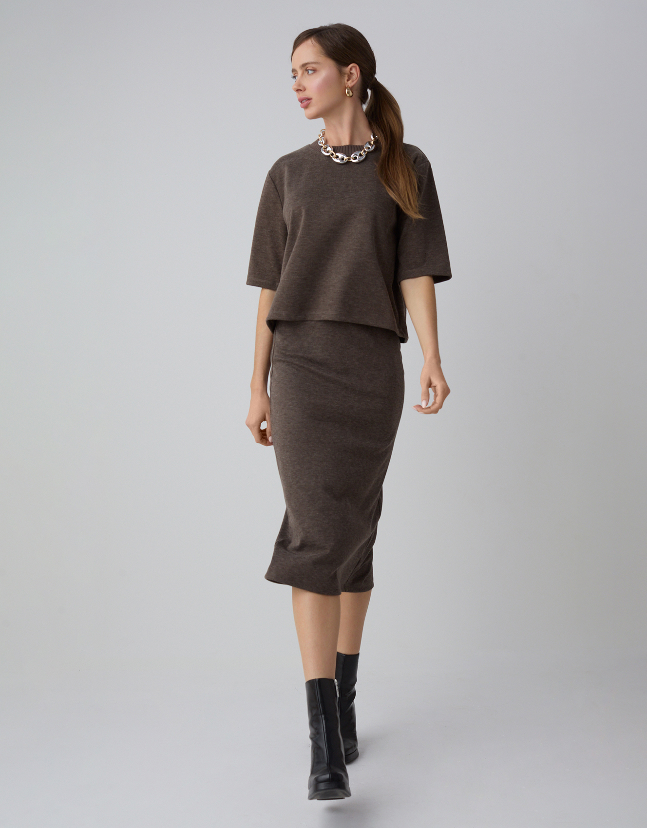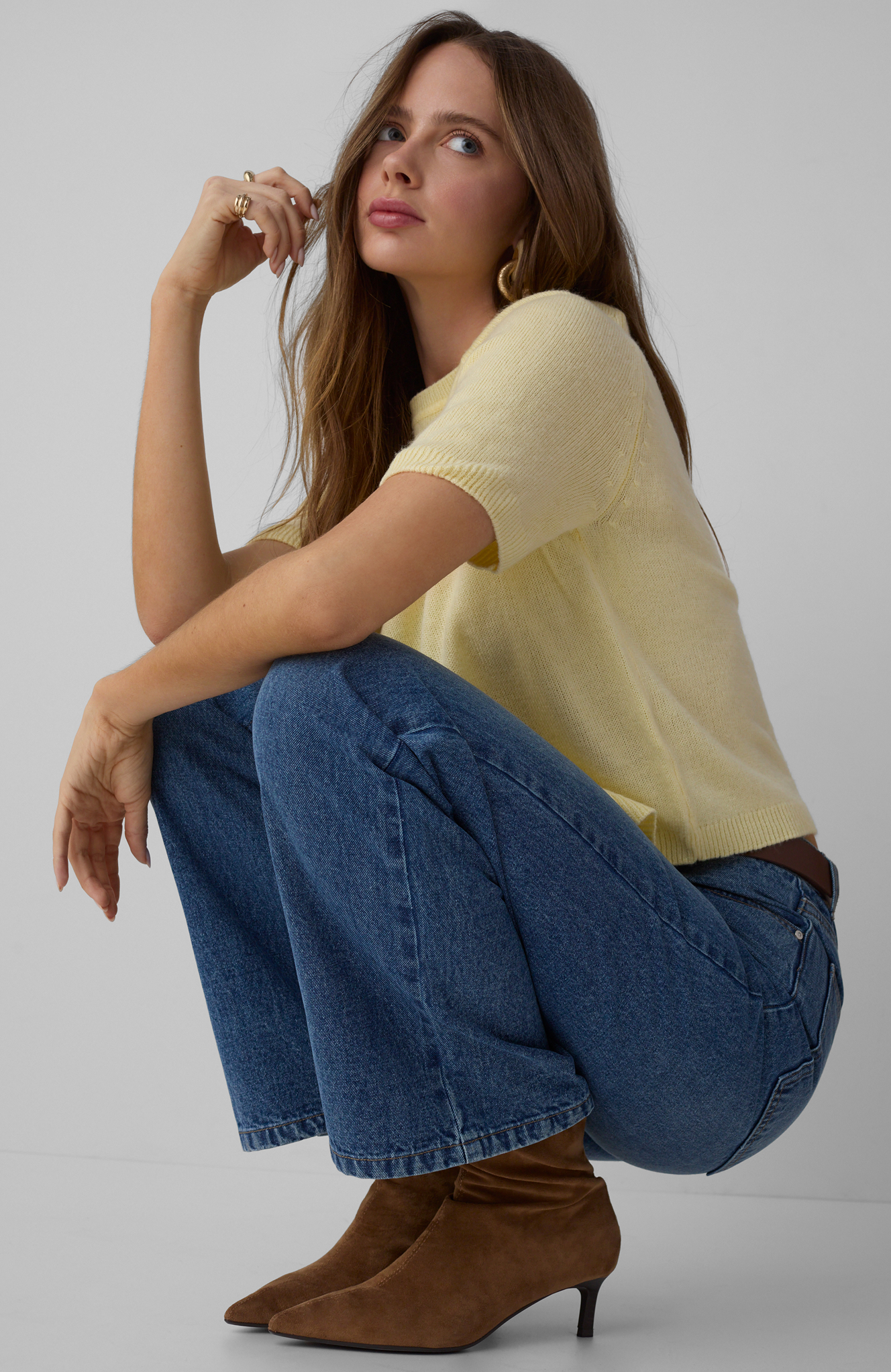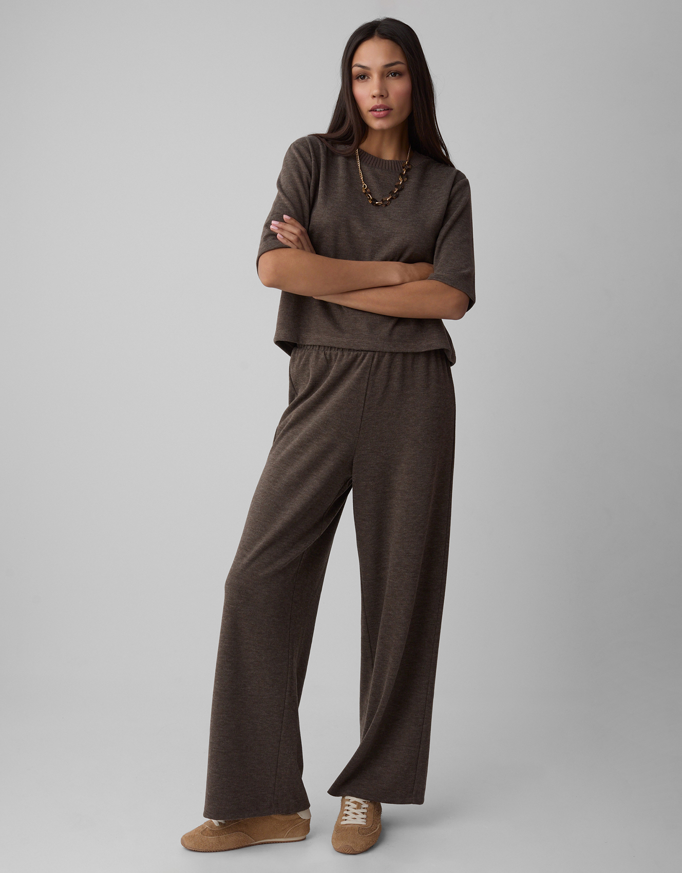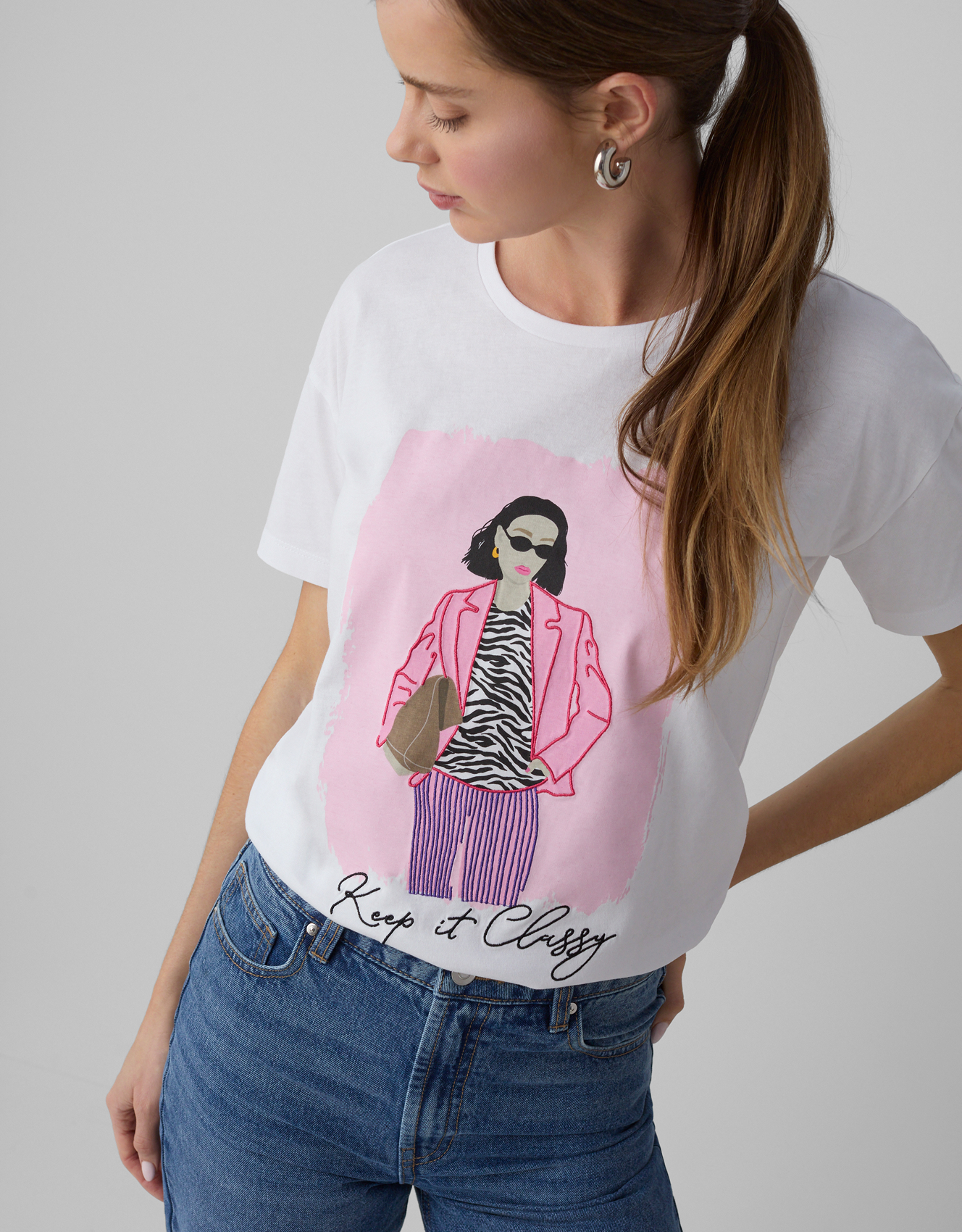 Zauważalny w kolekcji powrót do estetyki lat 90. to nie tylko ukłon w stronę nostalgii, ale przede wszystkim świadome nawiązanie do okresu, który charakteryzował się wyjątkową swobodą w modzie. Trend ten przejawia się w oversizowych bluzach, które świetnie sprawdzają się zarówno w casualowych stylizacjach, jak i w połączeniu z eleganckimi elementami garderoby. Wysokie spodnie z szerokimi nogawkami nie tylko nawiązują do tamtej epoki, ale także doskonale wpisują się w obecne trendy dotyczące wygody i uniwersalności. Crop topy, kolejny charakterystyczny element lat 90., zostały odświeżone i dostosowane do współczesnych potrzeb, oferując różnorodne możliwości stylizacji.