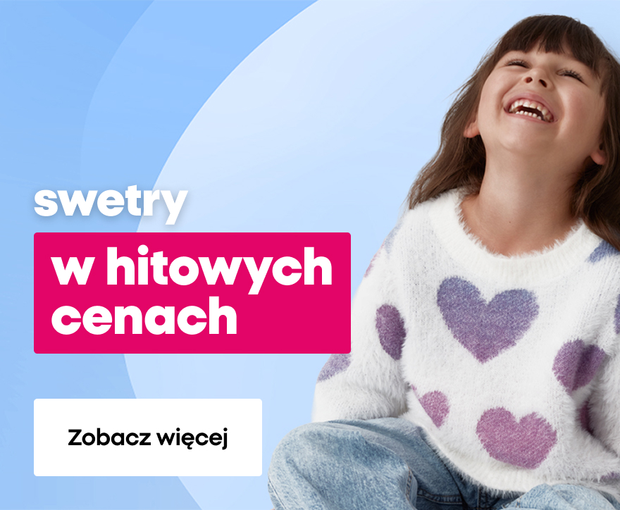 W tym tygodniu czekają na Ciebie cieplutkie swetry, miękkie i miłe w dotyku. Gładkie, w serduszka, w kropki, a może z uroczym misiem? Wybierz coś dla siebie w hitowej cenie!