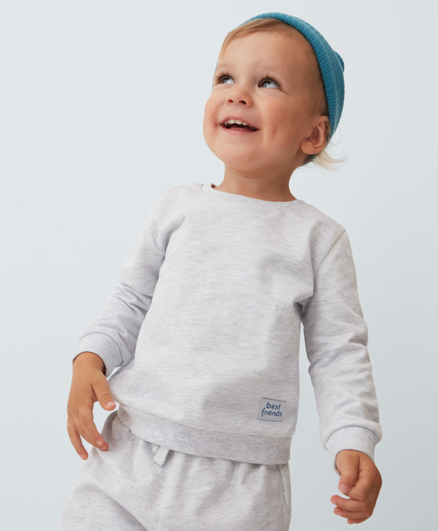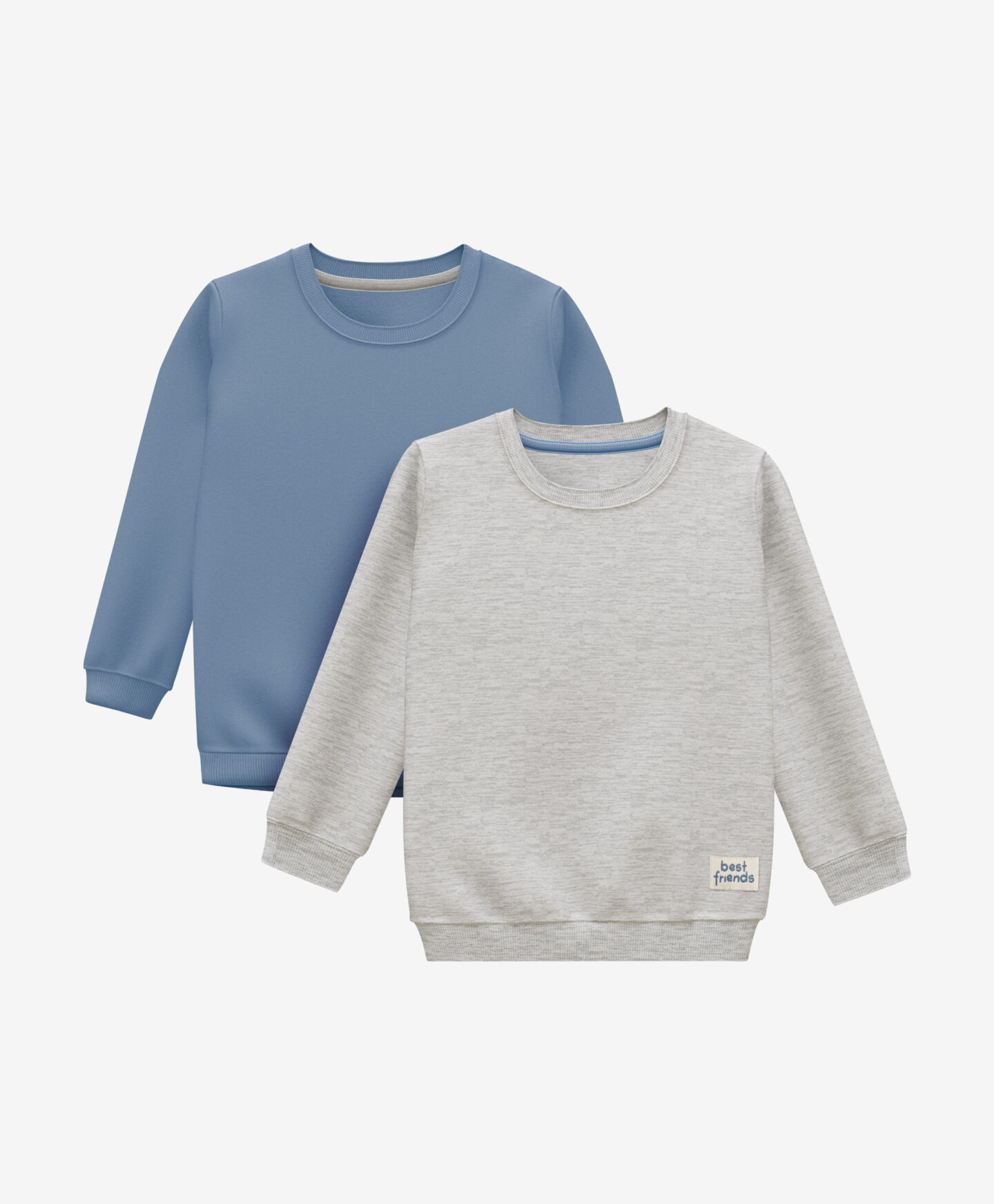 2-pak bluz niemowlęcych chłopięcych 100% bawełny idealnie pasuje do spodni z oferty. Bluzy są miękkie, ciepłe i wykończone elastycznymi mankietami. Stonowana kolorystyka i gładkie wykończenie sprawiają, że bluzy są bardzo uniwersalne i będą pasować do wielu części garderoby Twojej pociechy. Taki zestaw powinien znaleźć się w każdej wyprawce!