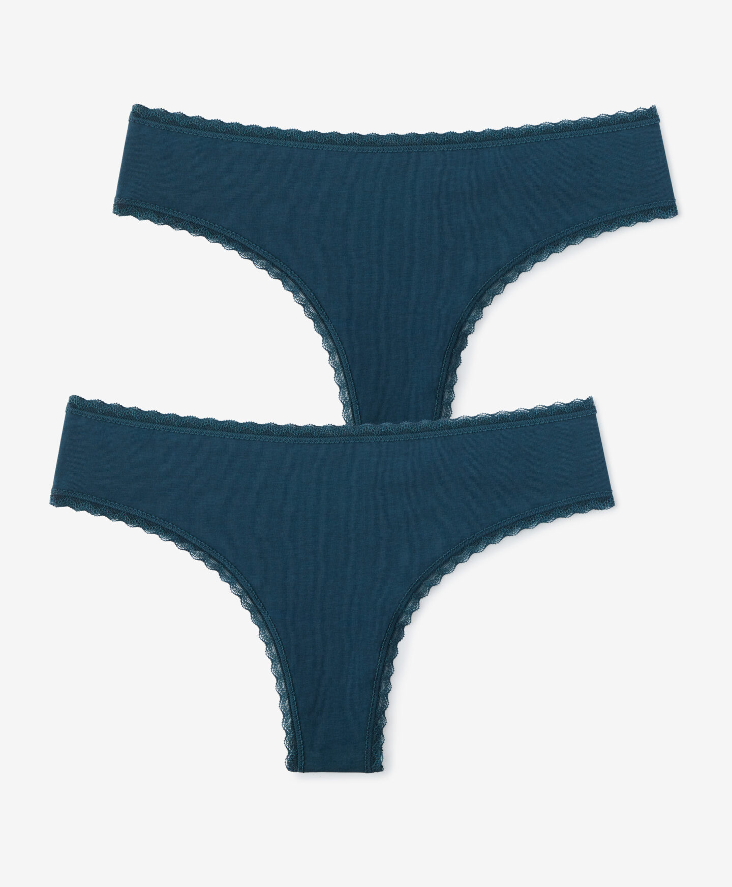 2-pak gładkich stringów z koronką, z wysoką zawartością bawełny, to doskonały wybór dla kobiet ceniących sobie komfort i subtelną elegancję. Przewiewny, delikatny dla skóry materiał gwarantuje komfort noszenia. Idealne zarówno na co dzień, jak i na specjalne okazje, stringi łączą funkcjonalność z estetyką.