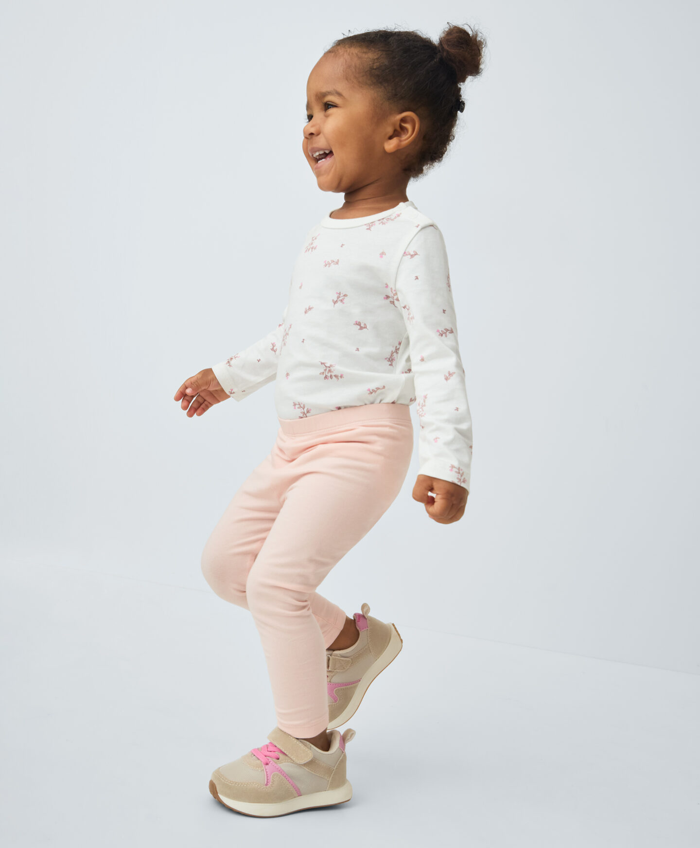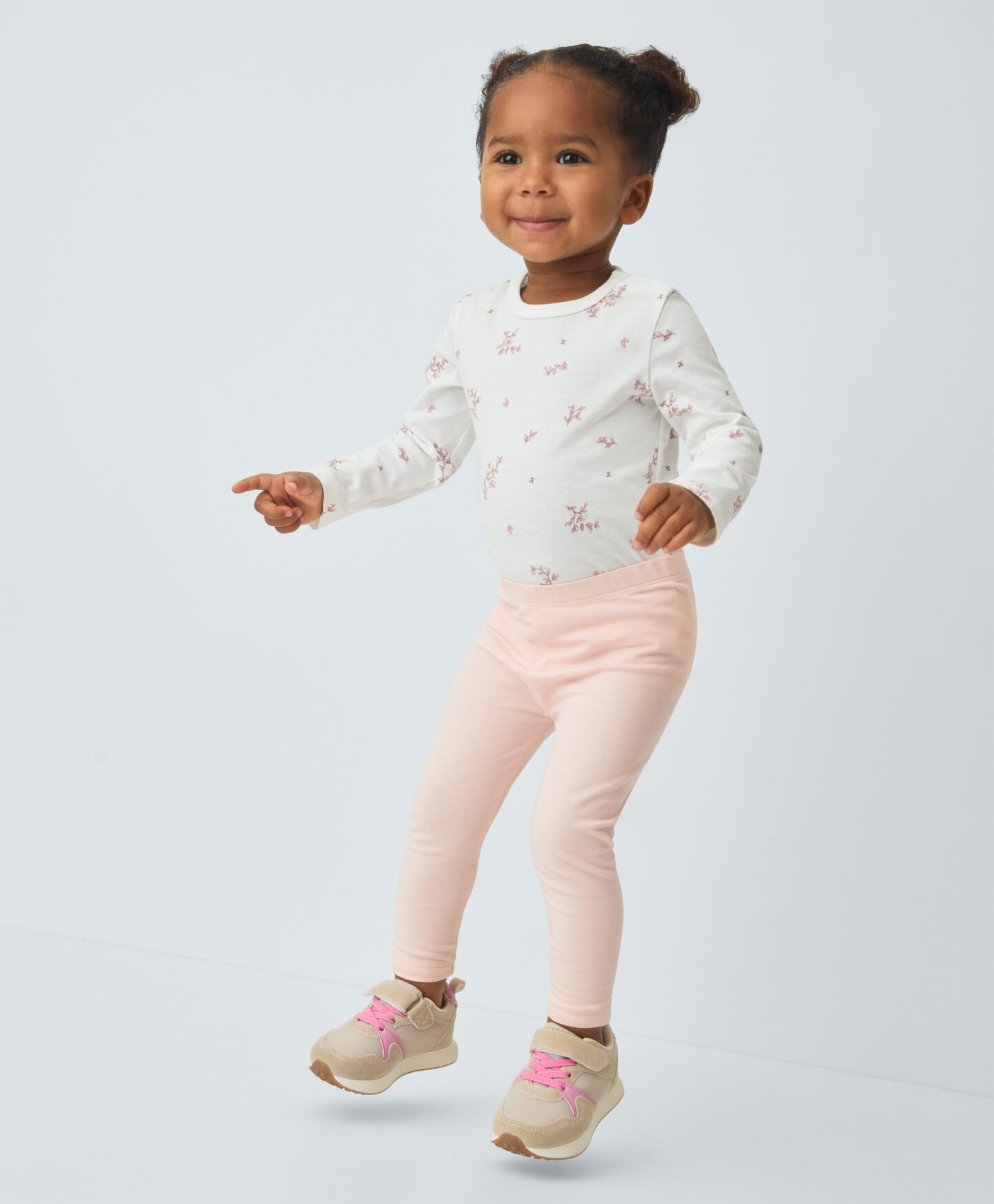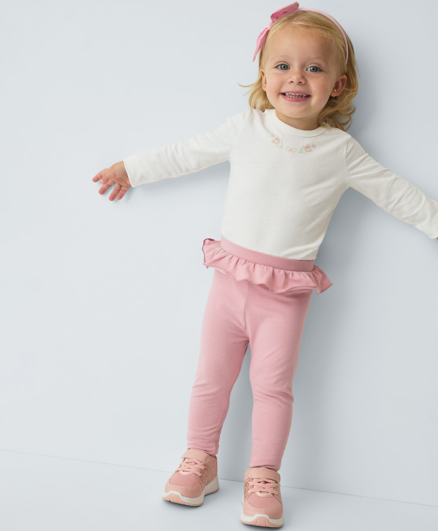 2-pak legginsów dziewczęcych niemowlęcych 100% bawełny to coś dla małej elegantki. Uszyte z naturalnych materiałów, legginsy są lekkie, oddychające i miło otulają skórę. Doskonale komponują się z body, koszulką, bluzą, a nawet sukienką czy spódniczką. Jedna para ozdobiona została uroczą falbanką. W zestawie dwa kolory legginsów.