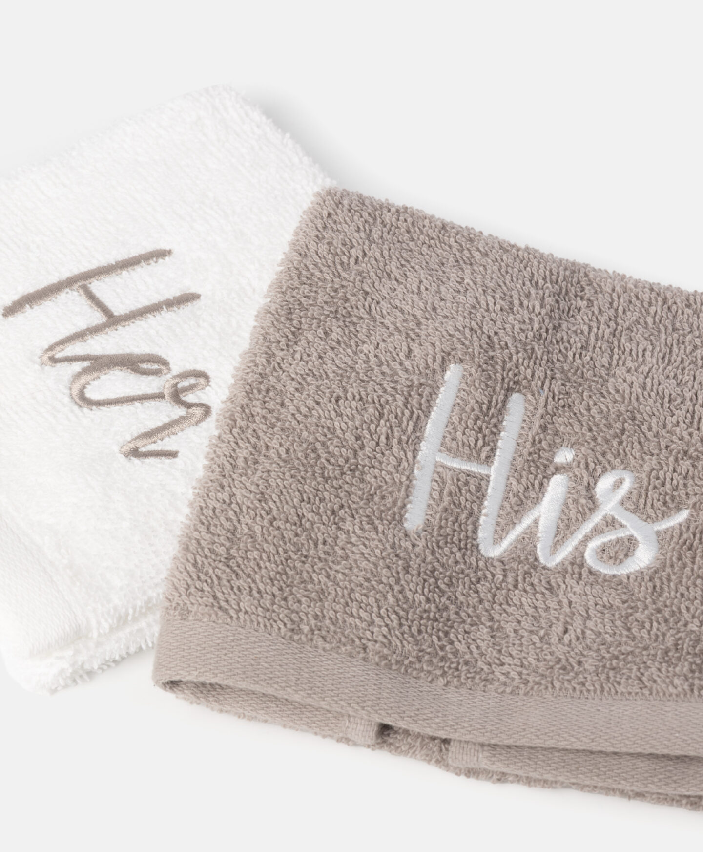 2-pak ręczników 100% bawełny w średnim rozmiarze z haftem są chłonne, przyjemne dla skóry i prezentują się niezwykle estetycznie. Świetnie sprawdzą się do codziennego osuszenia rąk po umyciu lub jako turban na umyte włosy. Subtelna kolorystyka pasuje do większości łazienek. W ofercie dostępne różne wymiary.