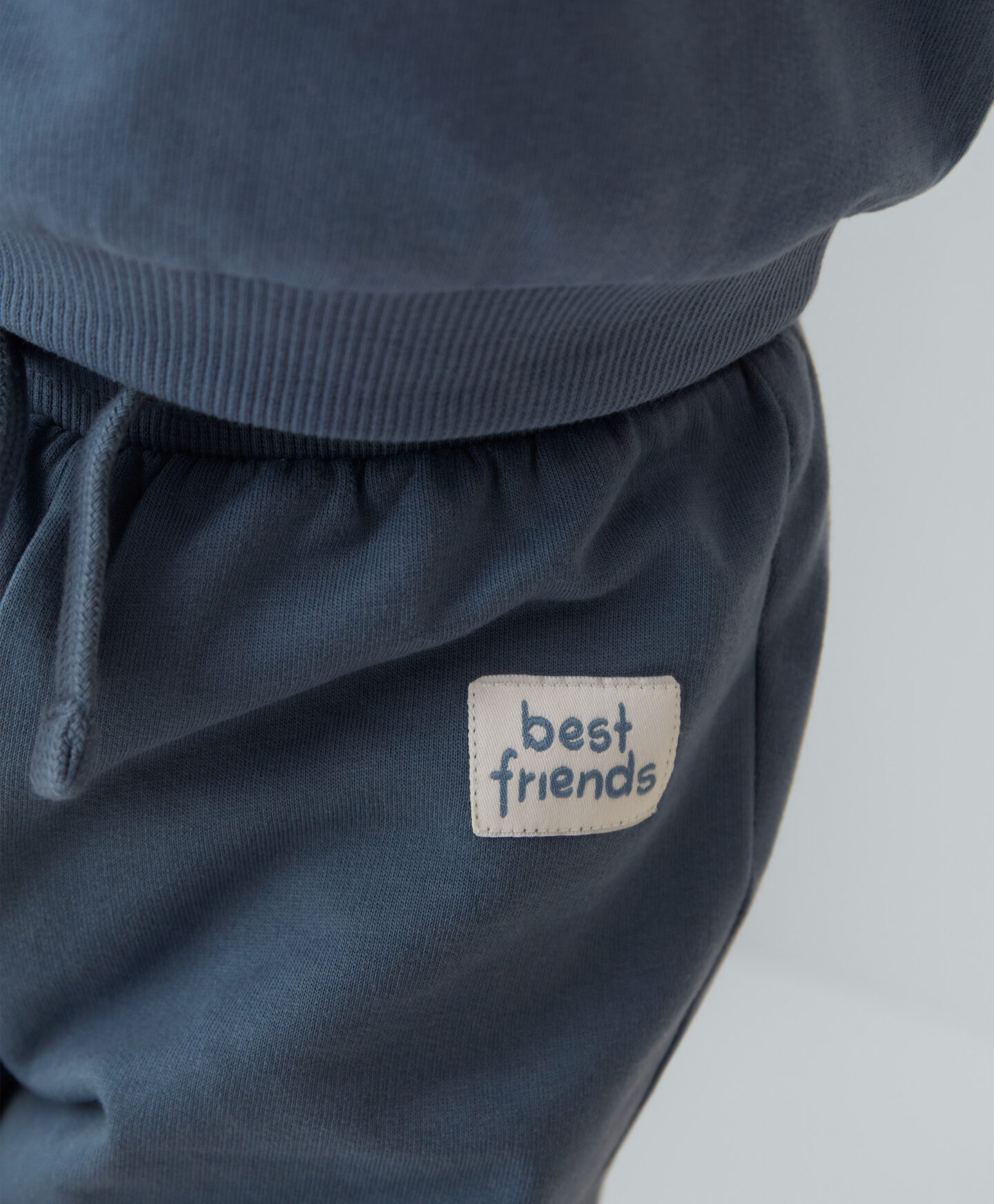 2-pak spodni chłopięcych niemowlęcych uszytych w 100% z bawełny to obowiązkowy element wyprawki. Spodnie są miękkie i przyjemne dla skóry, a każda para wyróżnia się innym wzorem. Spodnie są wykończone elastycznymi mankietami i wiązane w pasie, dzięki czemu dopasują się do każdej dziecięcej sylwetki. W ofercie dostępne pasujące bluzy.