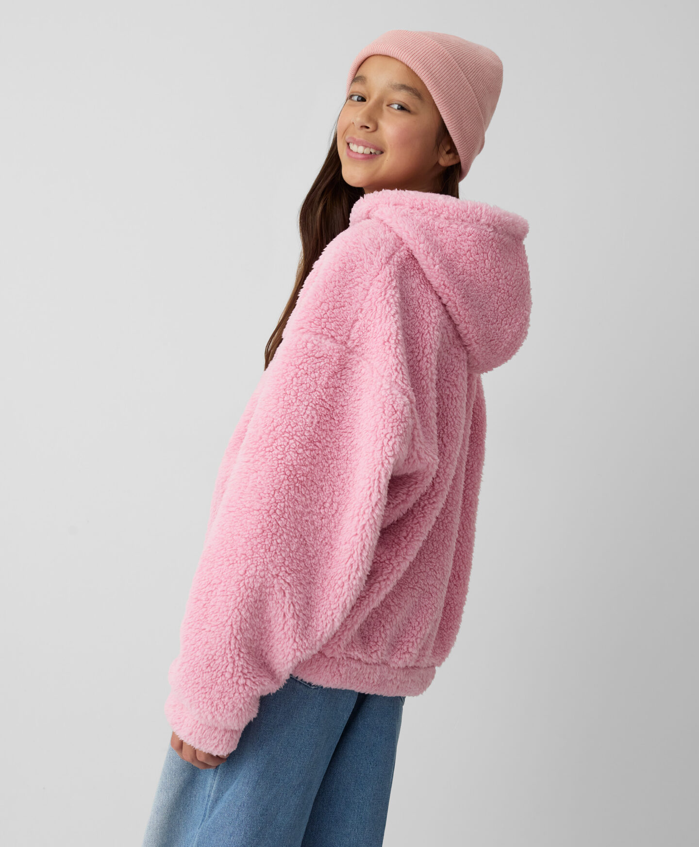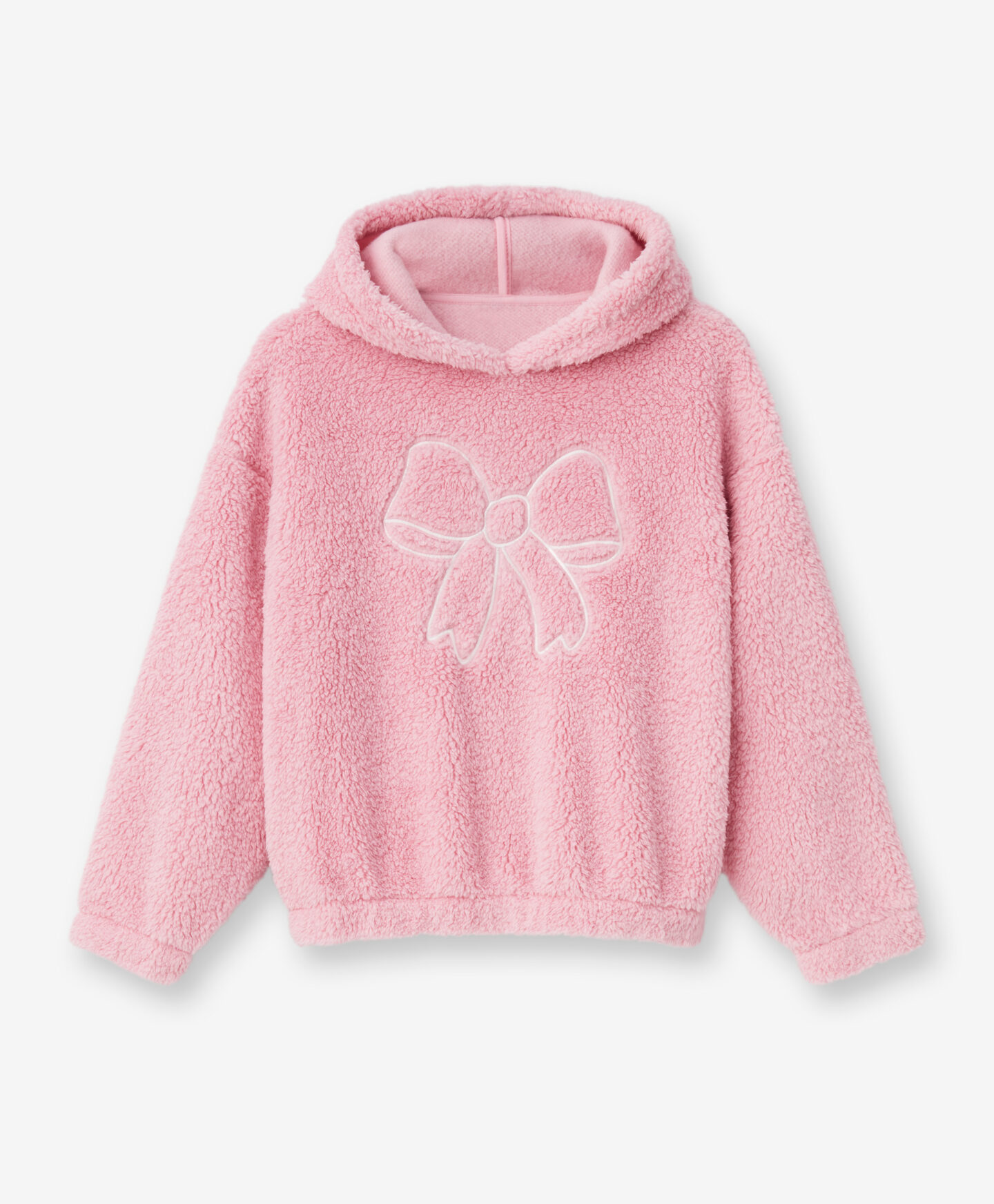 Bluza dziewczęca sherpa różowa z kapturem to kwintesencja ciepła i wygody. Wykonana z miłego w dotyku materiału, oferuje dziecku pełen komfort noszenia. Kaptur doskonale sprawdzą się, by osłonić głowę od wiatru w chłodniejsze dni. Luźny krój nie krępuje ruchów i zapewnia dziecku swobodę. Wzór w kształcie kokardki na froncie dodaje jej dziewczęcego uroku.