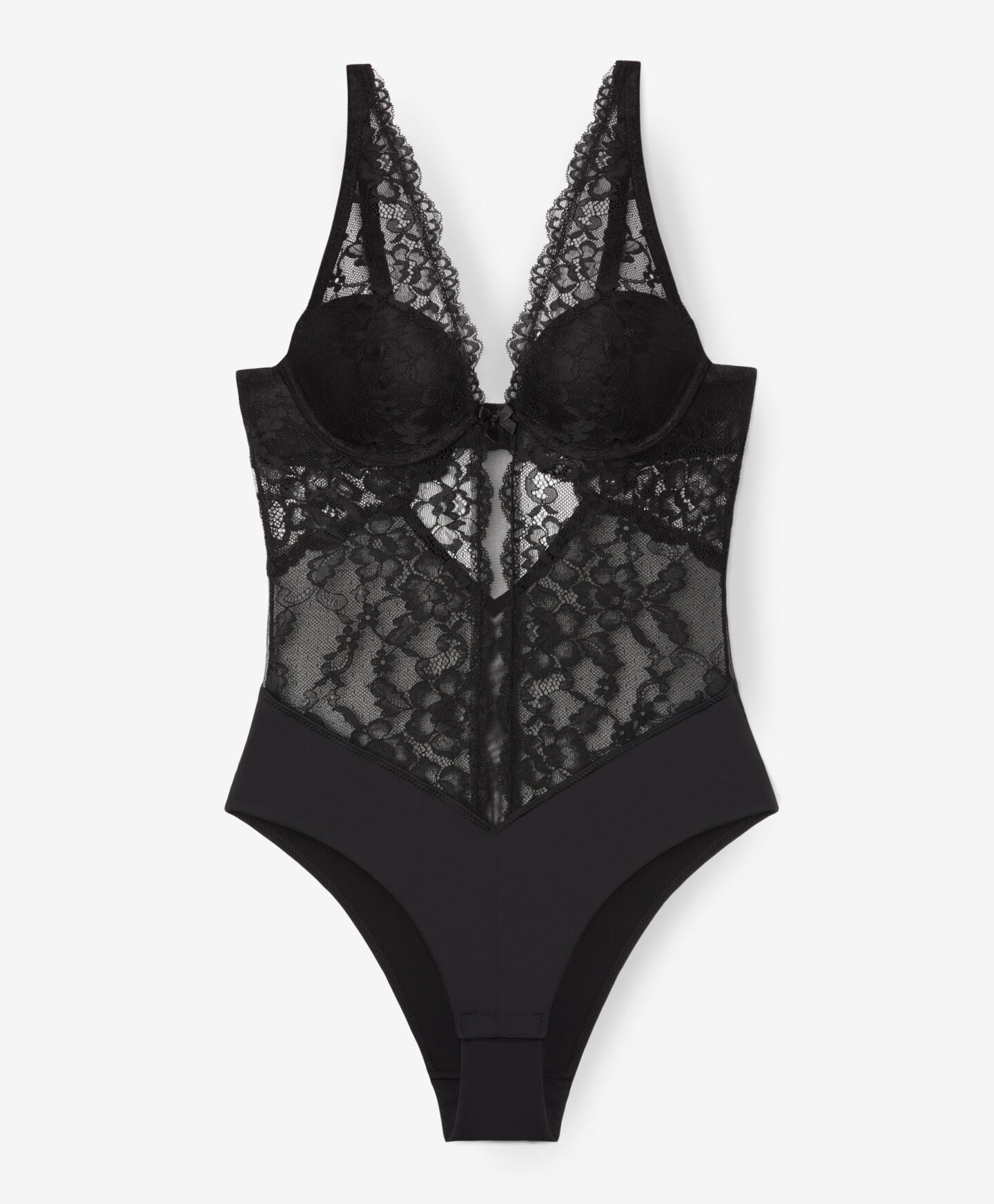 Body damskie z dekoltem w serek, wykonane z koronki, to idealny wybór dla kobiet ceniących subtelny styl. Dekolt w serek podkreśla szyję, dodając elegancji każdej stylizacji. Wykonane z delikatnej, przyjemnej w dotyku koronki, body zapewnia całodzienny komfort noszenia. Elastyczna tkanina doskonale dopasowuje się do sylwetki, podkreślając kobiece kształty. Body będzie wyjątkowym dodatkiem do każdej garderoby.