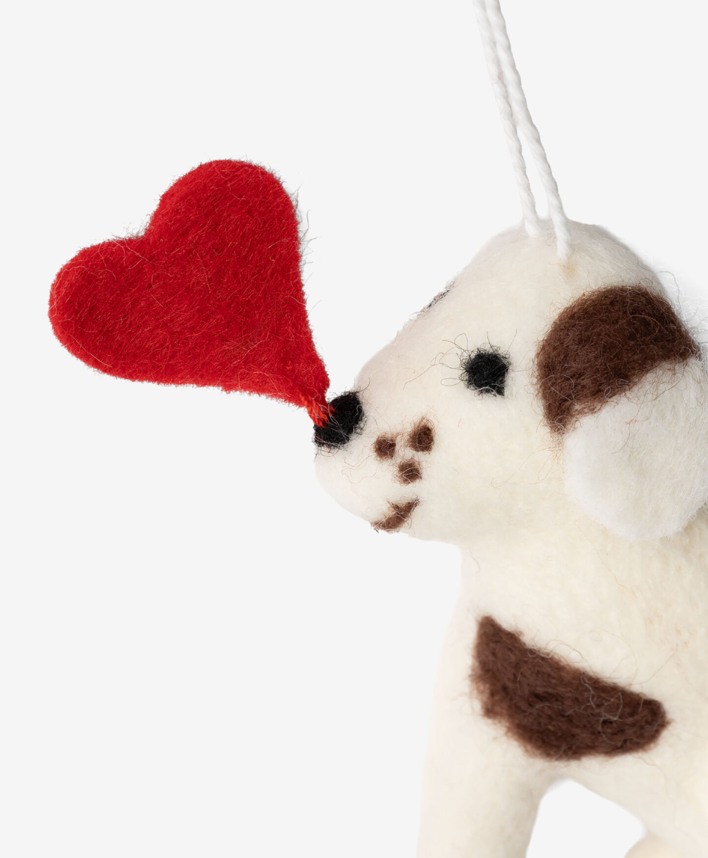 Filcowa zawieszka piesek z serduszkiem to urocza dekoracja walentynkowa. Nieduży rozmiar i miękka faktura sprawiają, że jest idealna do zawieszenia przy kluczach, torbie, plecaku lub piórniku. Doda kolorów każdej chwili i pozwoli wyrazić uczucie obdarowanej osobie. Dwa wzory do wyboru.
