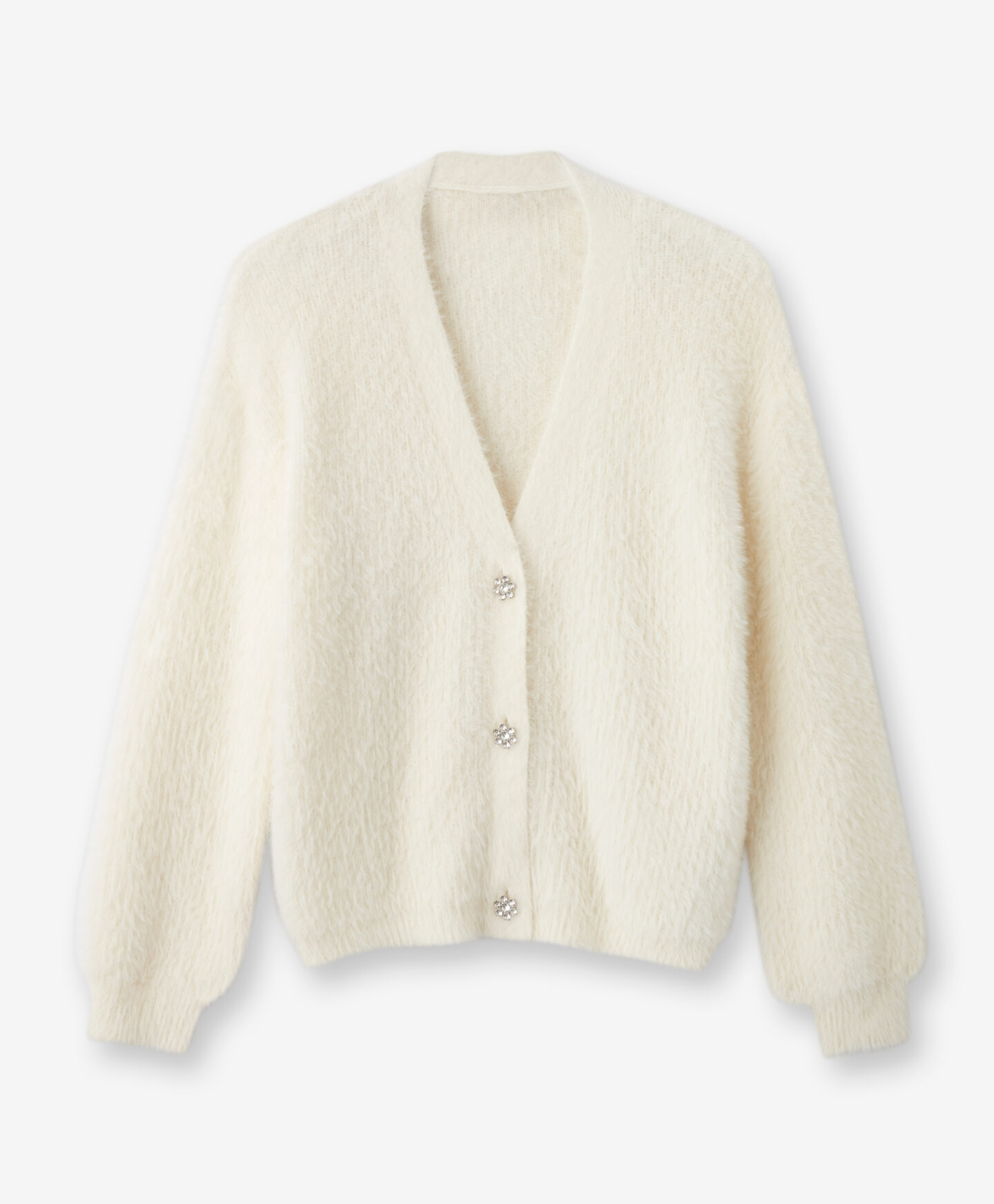 Kardigan damski biały z ozdobnymi guzikami to modowy hit nadchodzącej zimy! Jego miękki, puchaty materiał zapewnia komfort i ciepło, a ozdobne guziki dodają elegancji każdej stylizacji. Idealny do noszenia na co dzień lub na bardziej formalne okazje, świetnie komponuje się z różnymi elementami garderoby. W ofercie dwa warianty kolorystyczne.