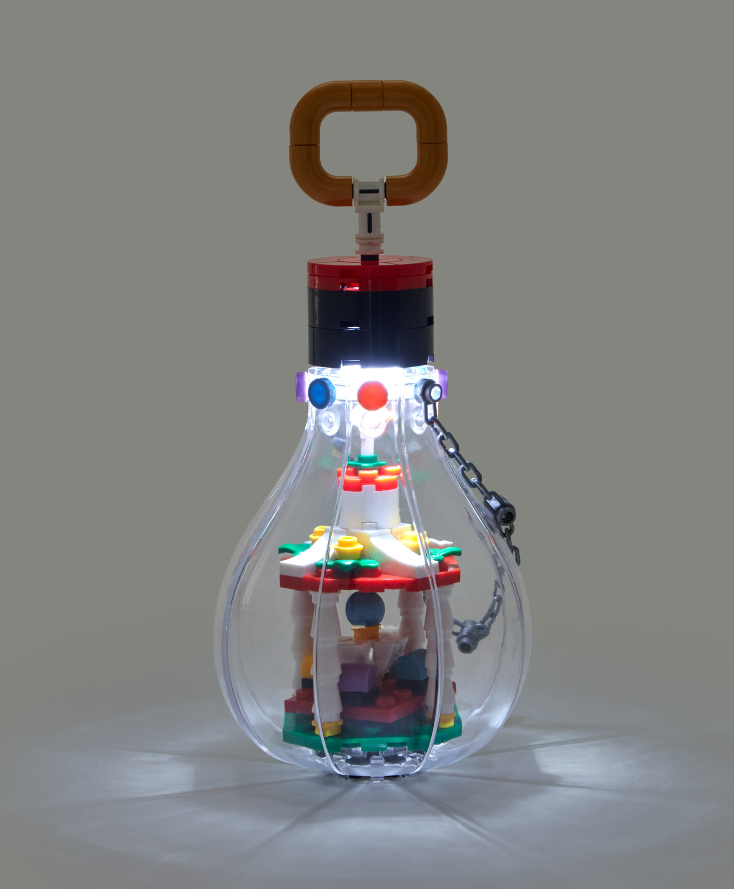 Klocki żarówka świąteczna domek wprowadza do wnętrza klimat zimowej wioski. Miniaturowa chatka ukryta wewnątrz żarówki rozświetla się przyjemnym światłem, tworząc bajkowy efekt. To dekoracja, która idealnie pasuje do świątecznego stołu, komody czy choinki.