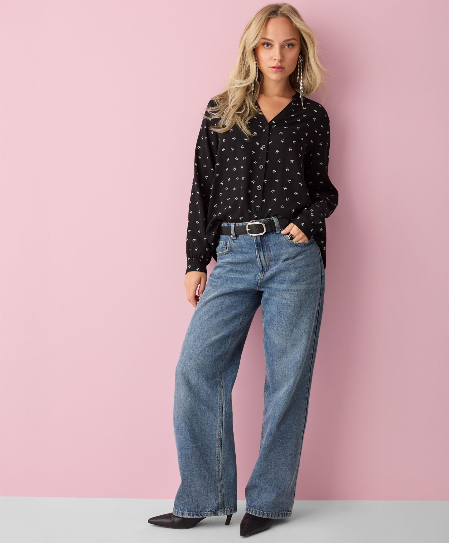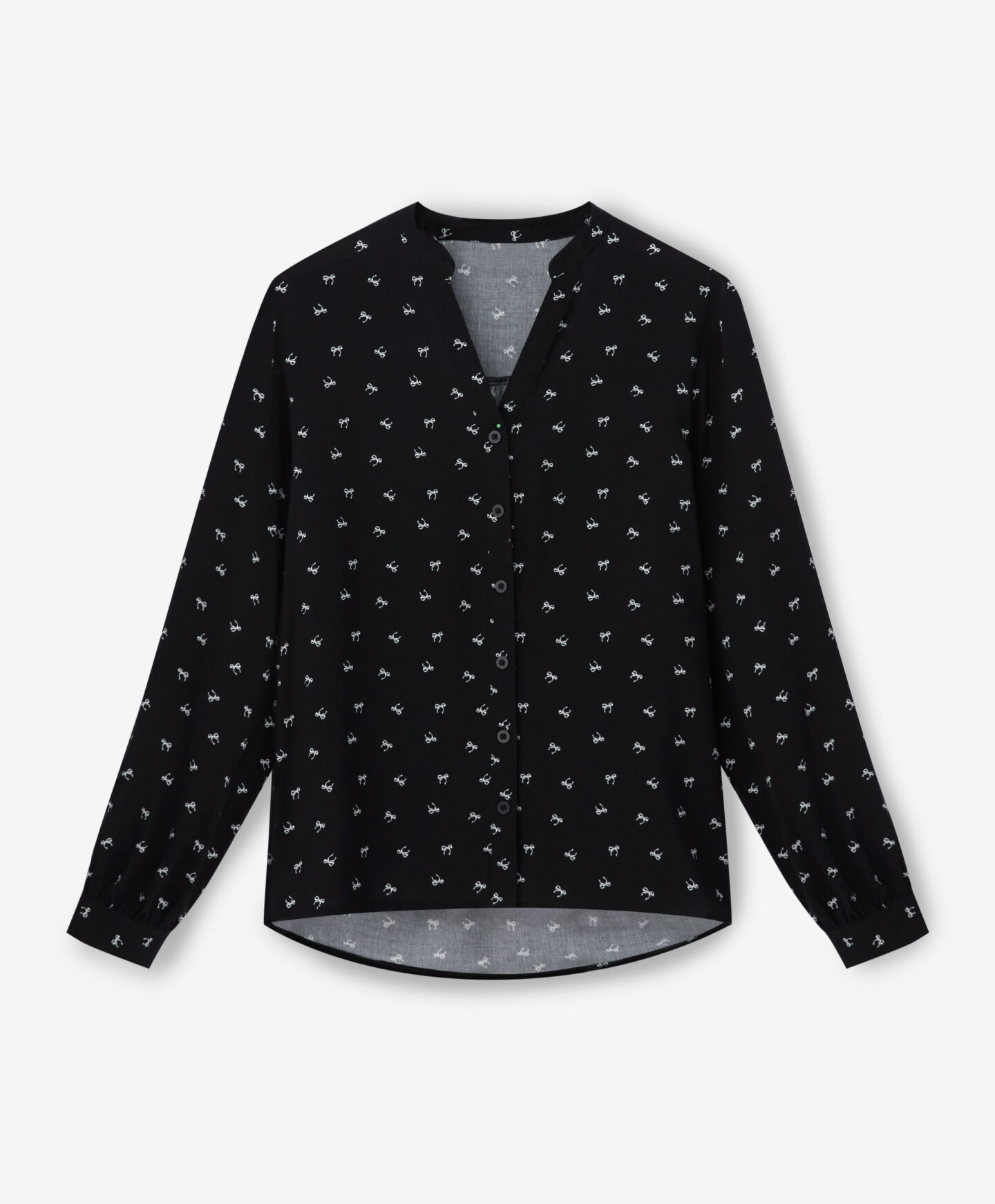 Koszula damska 100% wiskozy, z długim rękawem, ozdobiona jest subtelnym wzorem kokardek. Jest lekka, zwiewna i romantyczna. Doskonała nie tylko na co dzień, ale także na specjalne okazje. Oddychająca wiskoza sprawia, że to idealny wybór pod żakiet, sweter czy kardigan.