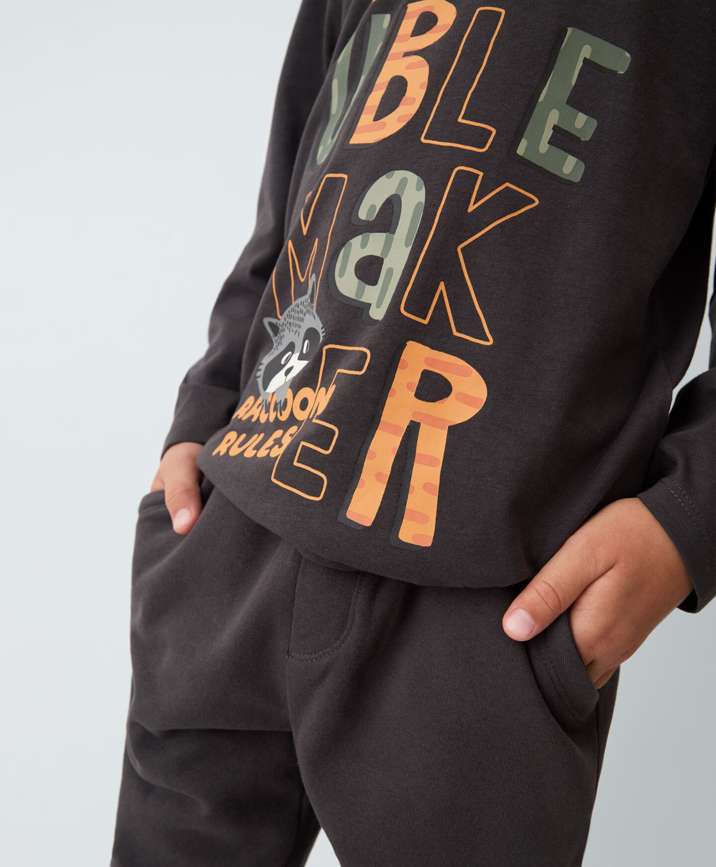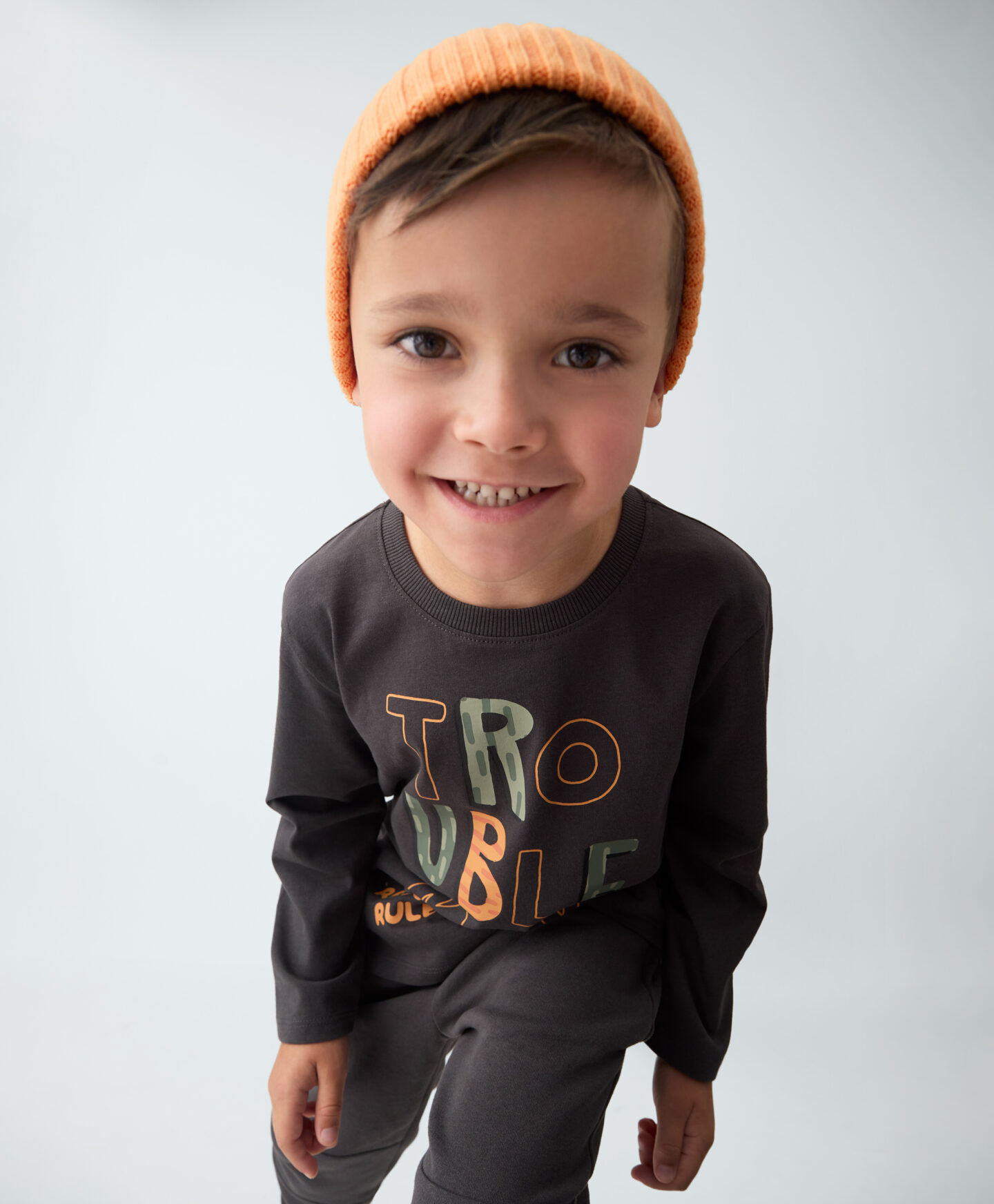 Koszulka chłopięca 100% bawełny z długim rękawem świetnie sprawdzi się podczas chłodniejszych dni. Ciemna kolorystyka koszulki idealnie wpisuje w jesienną aurę, a grafika na froncie dodaje jej charakteru. Koszulka będzie pasować zarówno do jeansów, jak i spodni sportowych. Miękki, delikatny dla skóry materiał zadba o wygodę Twojego dziecka.