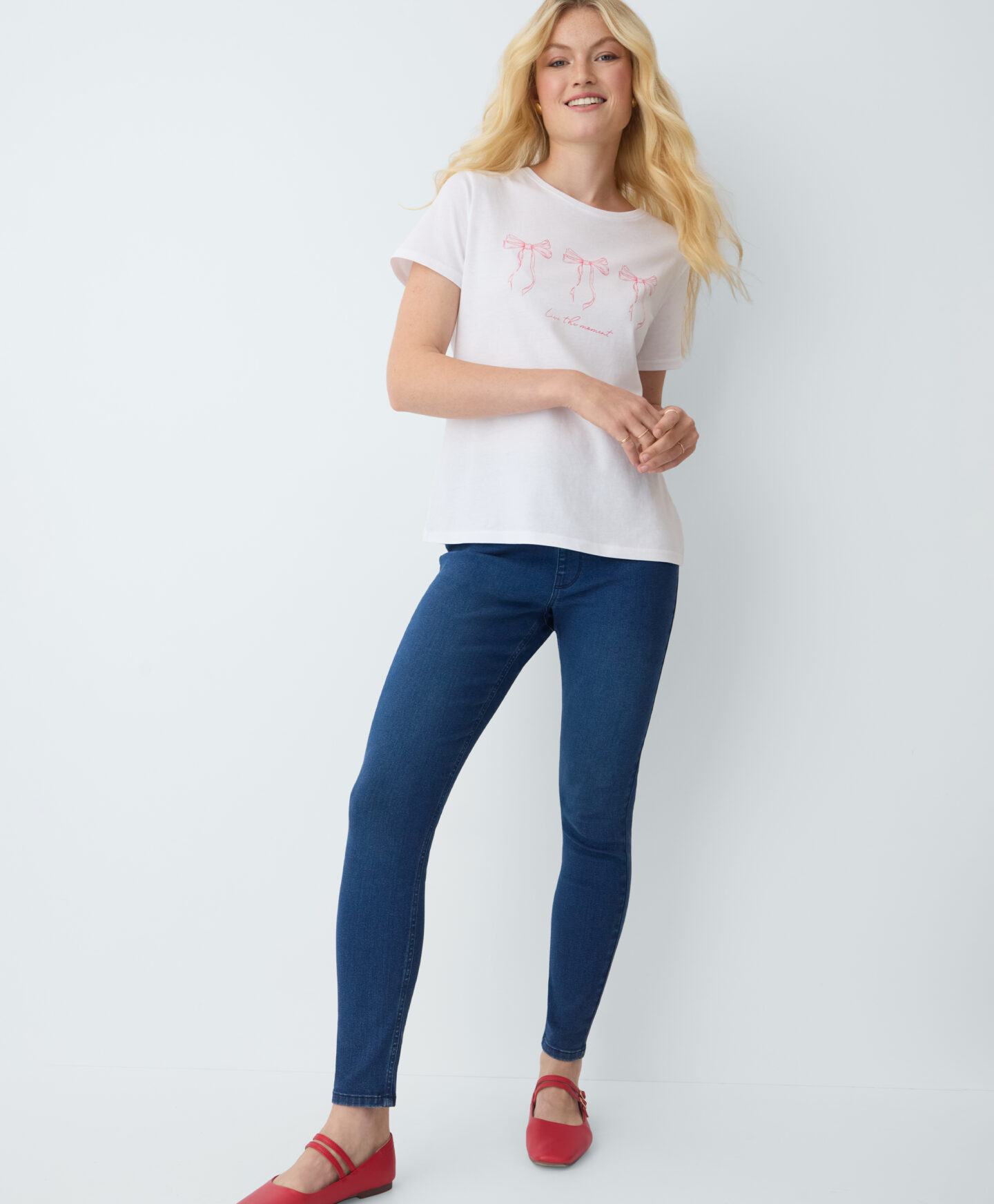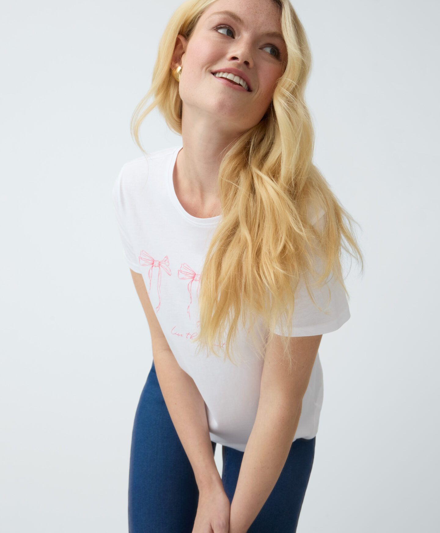 Koszulka damska 100% bawełny z printem na froncie to coś dla miłośniczek wygody. Miękki materiał miło otuli Twoją skórę, a uniwersalny kolor pozwoli Ci stworzyć wiele udanych stylizacji. Doskonale sprawdzi się noszona pod sweterek lub kardigan. W połączeniu z klasycznymi jeansami stworzy stylizację idealną zarówno do biura, jak i na uczelnię.