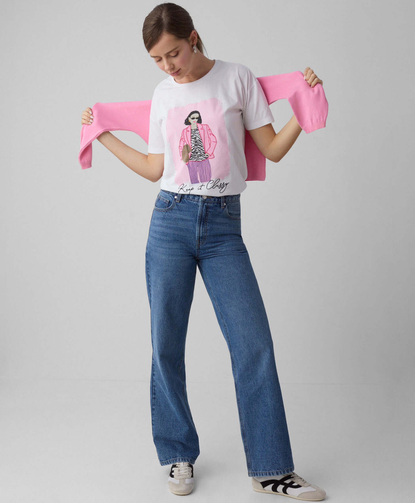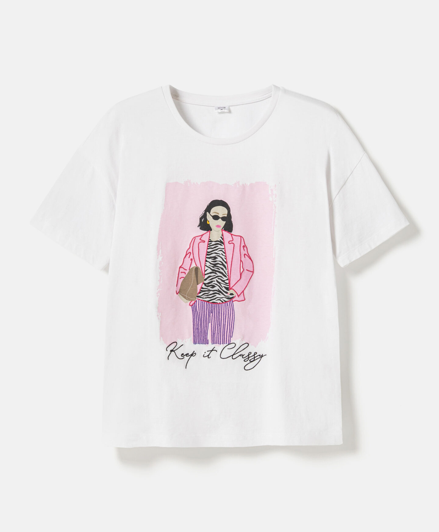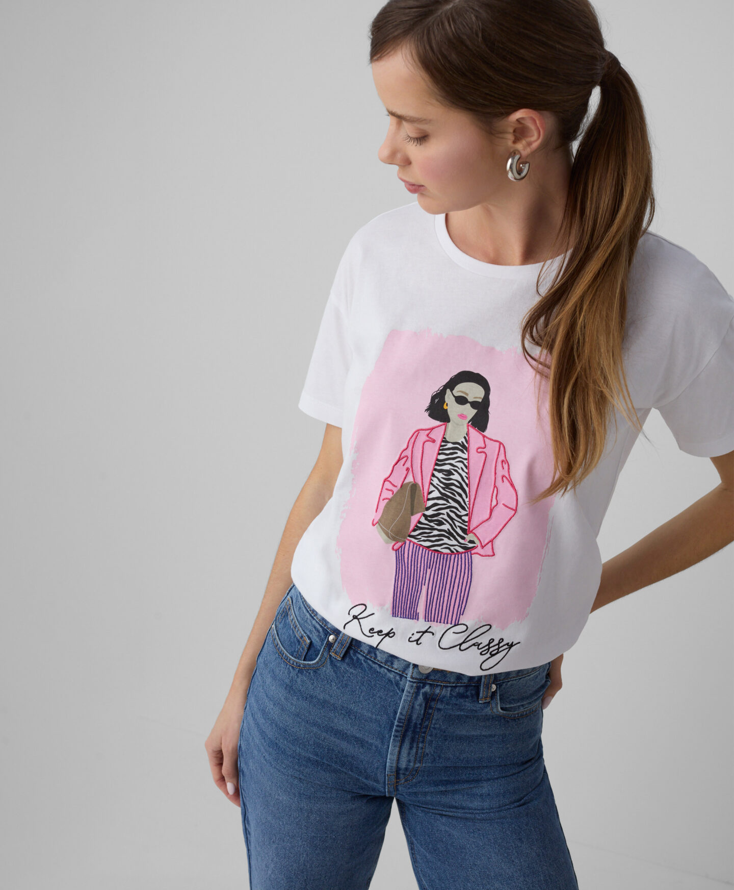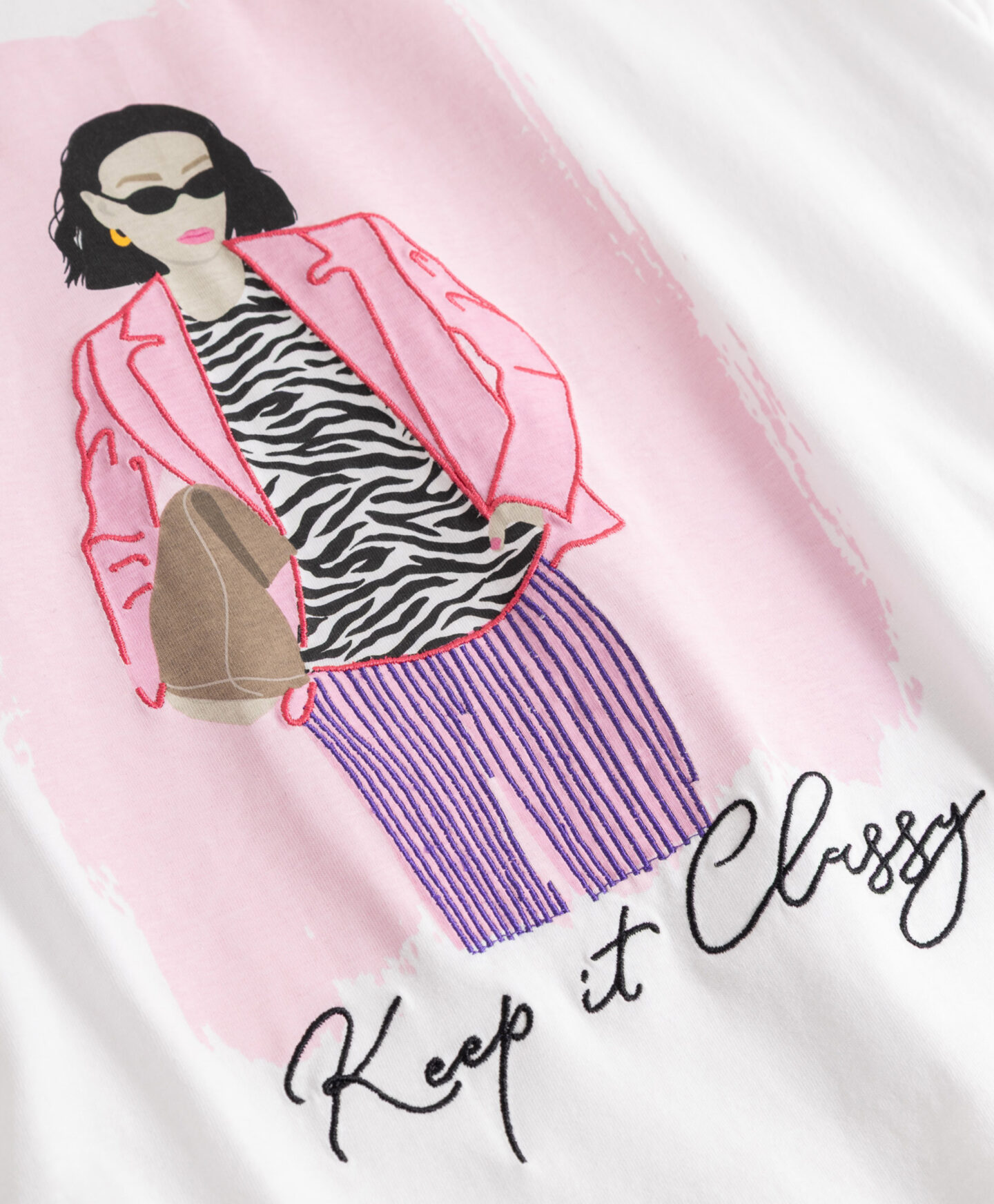 Koszulka damska 100% bawełny jest przyjazna dla skóry, przewiewna i łatwa w utrzymaniu w czystości. Naturalny materiał zapewnia wygodę podczas całodniowego noszenia, niezależnie od sytuacji. Koszulka wyróżnia się stylowym nadrukiem, który daje jej oryginalności. To doskonała propozycja dla kobiet, które chcą wyrazić siebie poprzez ubiór.