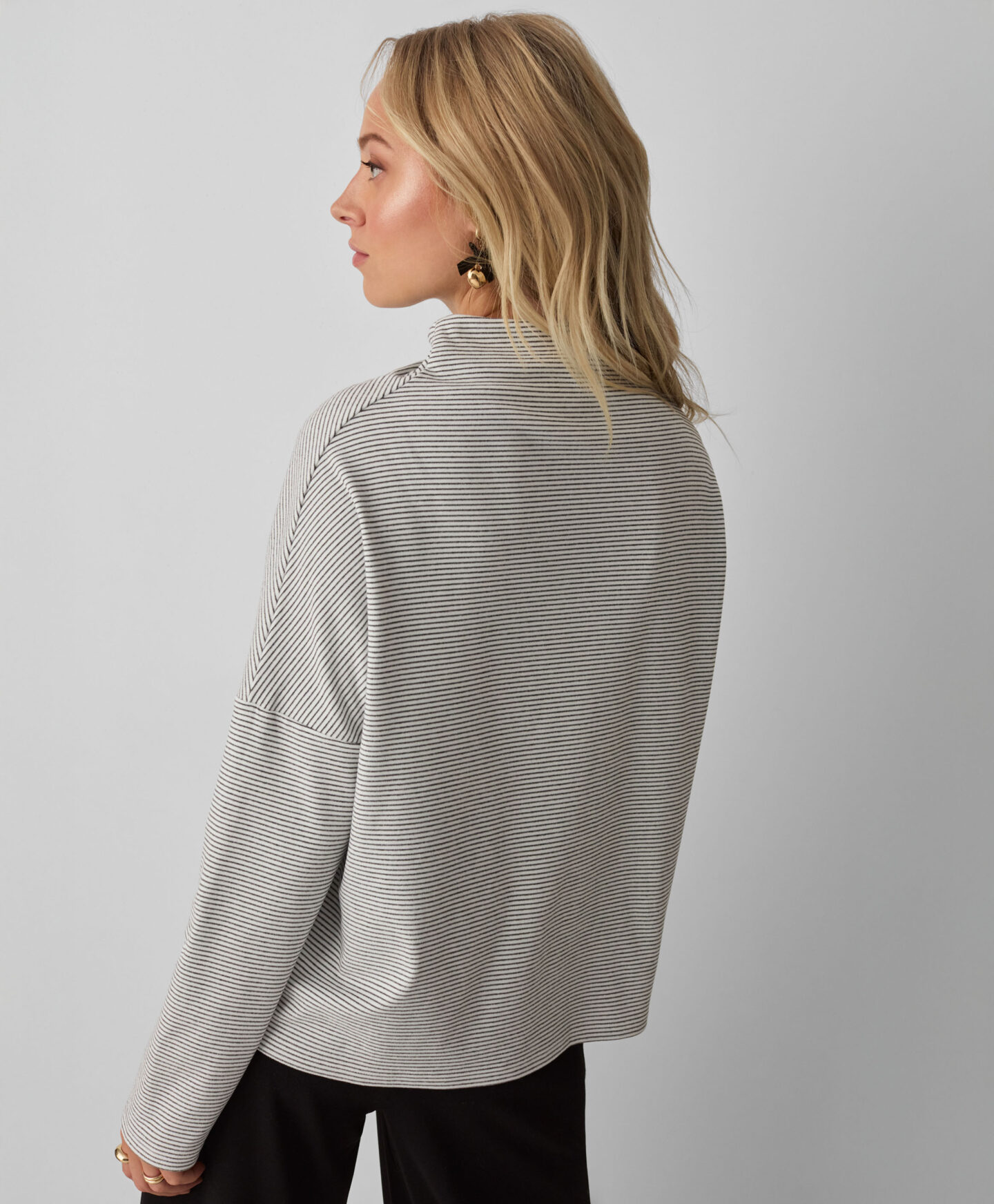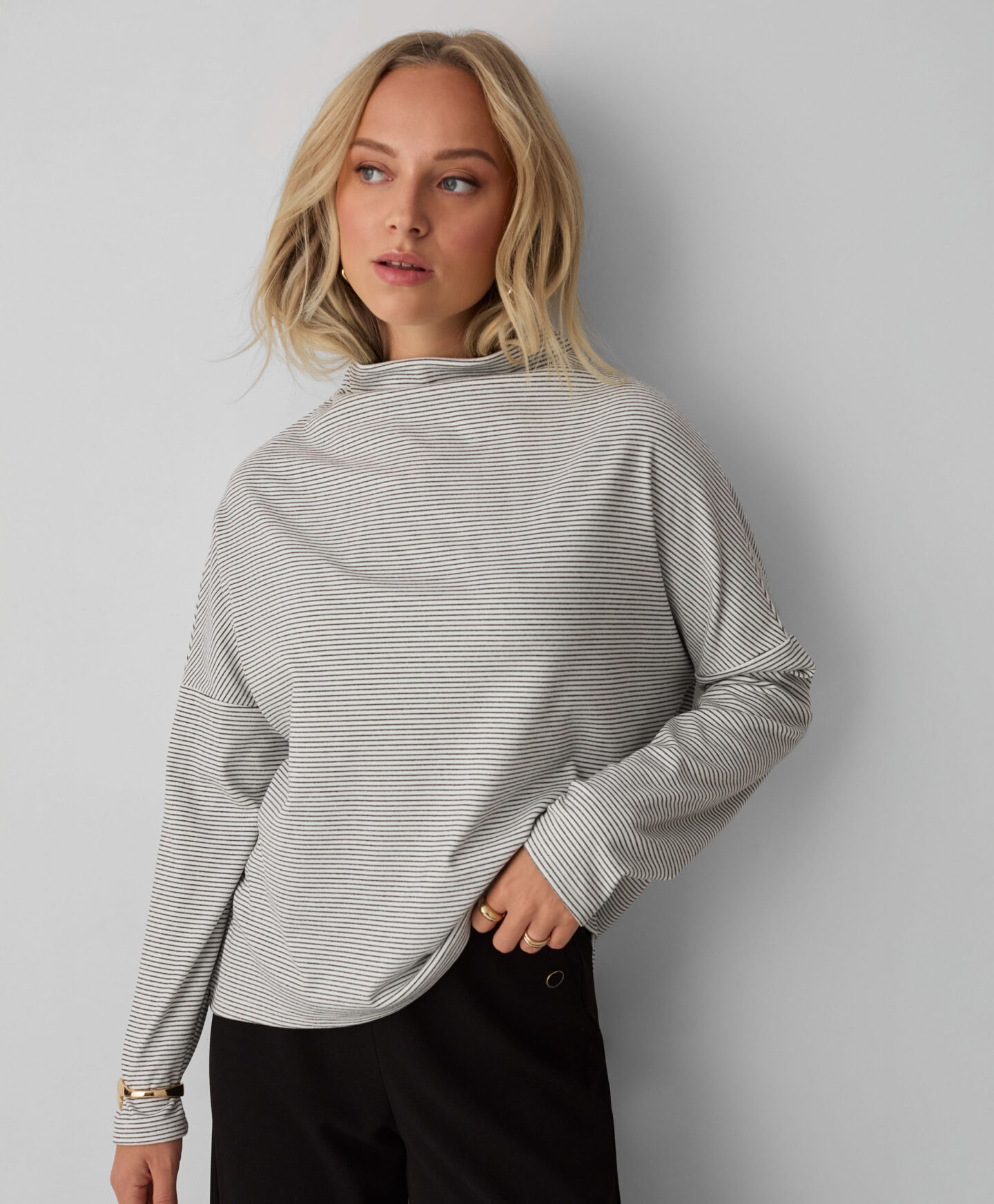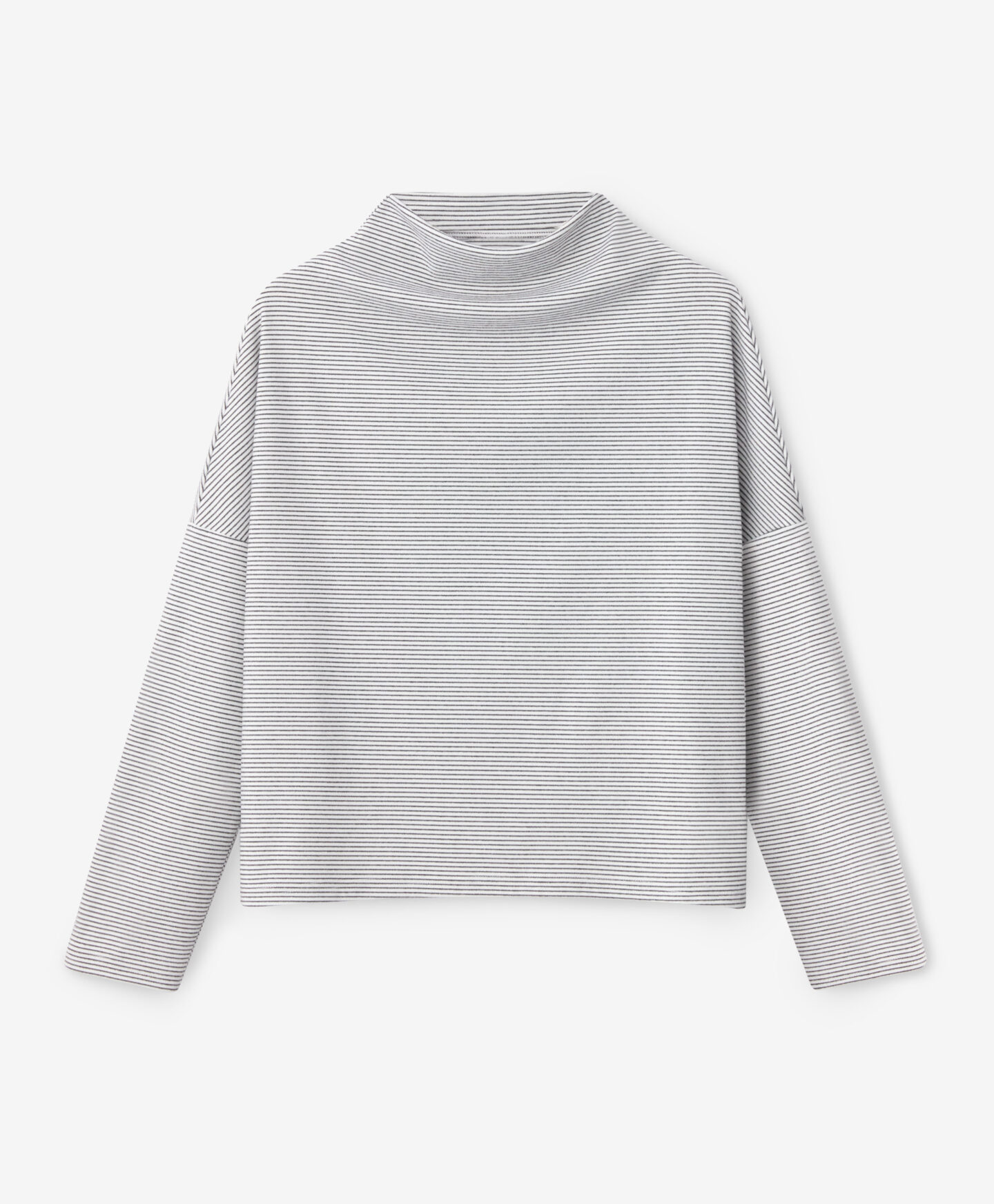 Koszulka damska ze stójką w paski świetnie prezentuje się zestawiona z klasycznymi jeansami. Jest lekka, miła w dotyku i delikatnie otula skórę. Będzie doskonałym wyborem zarówno do pracy, jak i podczas relaksu w domowym zaciszu. Stójka pod szyją oferuje dodatkowe ciepło i doskonale sprawdzi się w sezonie jesienno-zimowym.