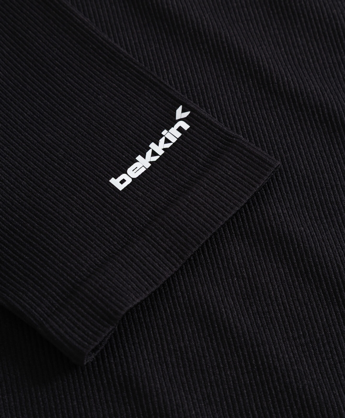 Koszulka dziewczęca Bekkin czarna została wykonana z miękkiego i elastycznego materiału, który doskonale dopasowuje się do sylwetki. Dzięki bezszwowej konstrukcji zapewnia wygodę noszenia przez cały dzień, zapobiegając podrażnieniom skóry. Świetnie sprawdzi się zarówno w codziennych stylizacjach, jak i podczas aktywności fizycznej.