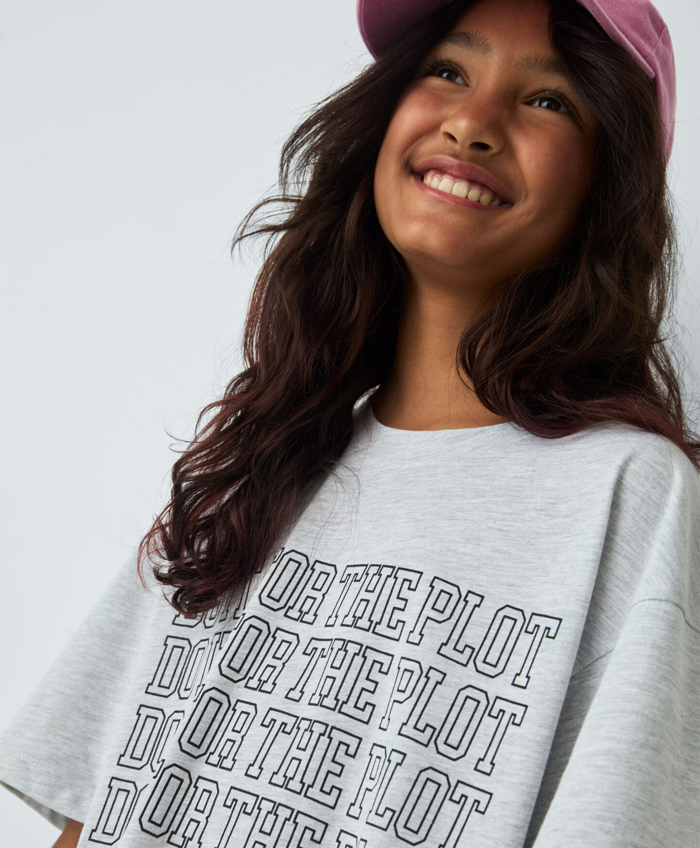 Koszulka dziewczęca z nadrukiem 100% bawełny zapowiada dzień pełen przygód! Klasyczny fason, krótkie rękawy i delikatny print na wysokości klatki piersiowej sprawiają, że to uniwersalna baza do codziennych stylizacji: do szkoły, na spacer i do zabawy.