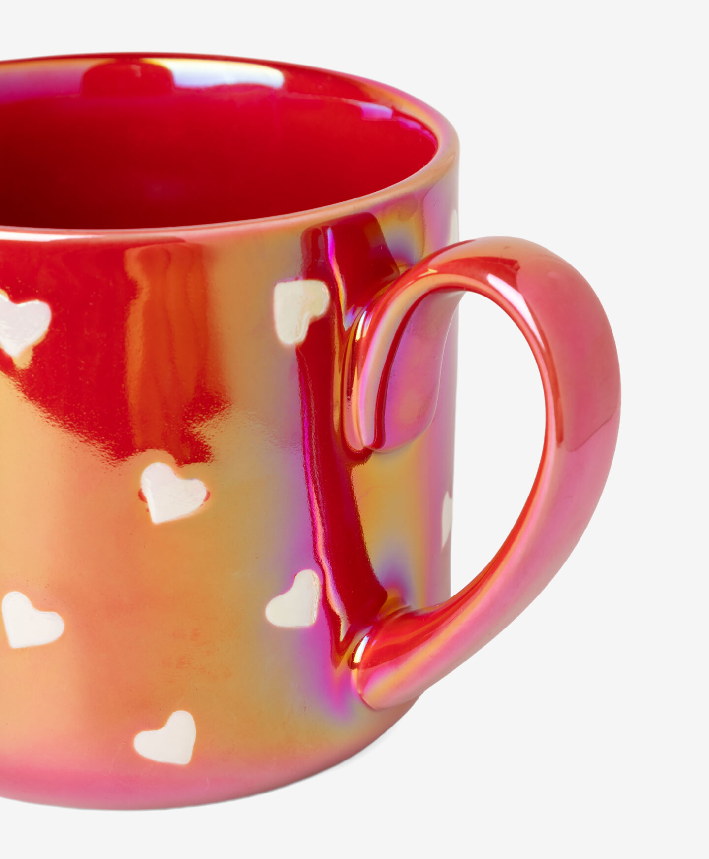 Kubek w serduszka czerwony z efektem holo wyróżnia się spośród zastawy. Romantyczny wzór sprawia, że jest idealny na nadchodzące walentynki, picie porannej kawy lub herbaty, a także jako wyjątkowy prezent dla bliskiej osoby. Wykonany z trwałej porcelany, jest odporny na codzienne użytkowanie i łatwy do utrzymania w czystości. W ofercie dwa kolory.