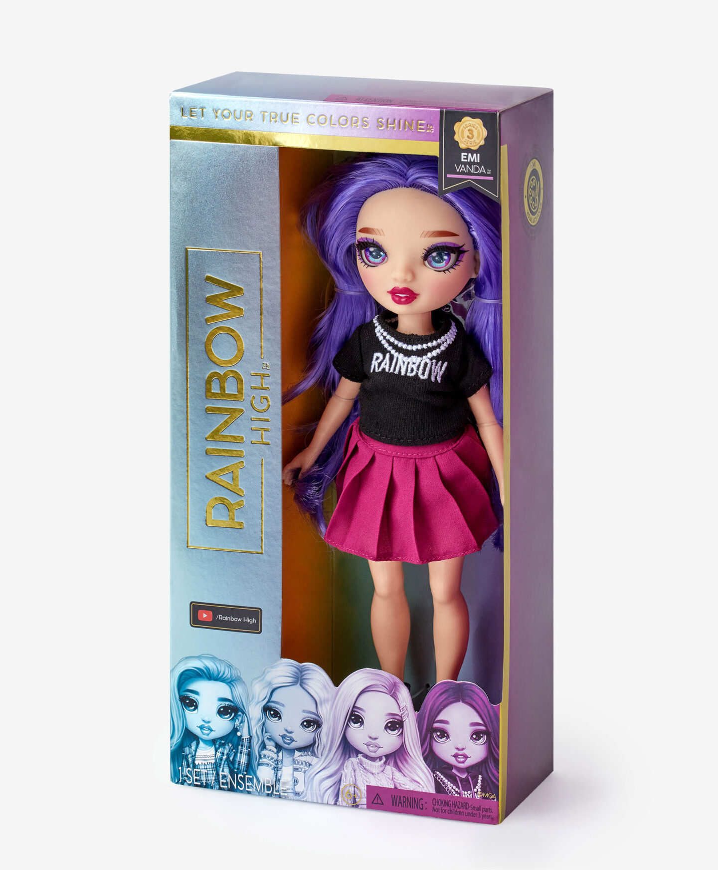 Lalka Rainbow High z fioletowymi włosami wyróżnia się niezwykłą fryzurą, która od razu przyciąga uwagę. Jej wygląd inspiruje do tworzenia kreatywnych historii. To idealna bohaterka dla dzieci, które lubią zabawę z charakterem i fantazją.