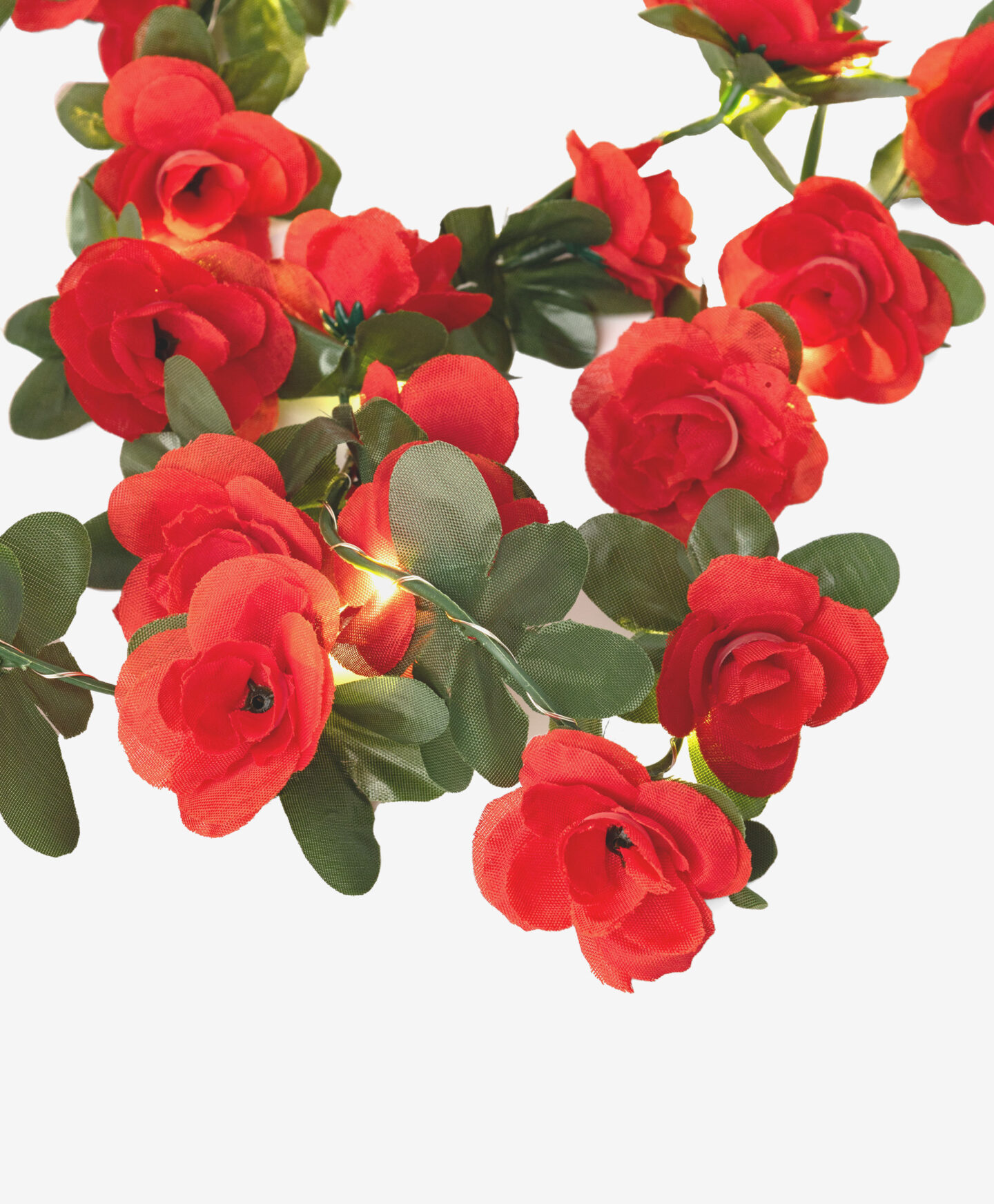 Łańcuch LED złożony z drobnych róż to piękna ozdoba. Subtelnie rozświetli przestrzeń, dodając jej ciepła i przytulności. Będzie się pięknie prezentował zawieszony na zagłówku łóżka lub ułożony na blacie komody czy stołu.