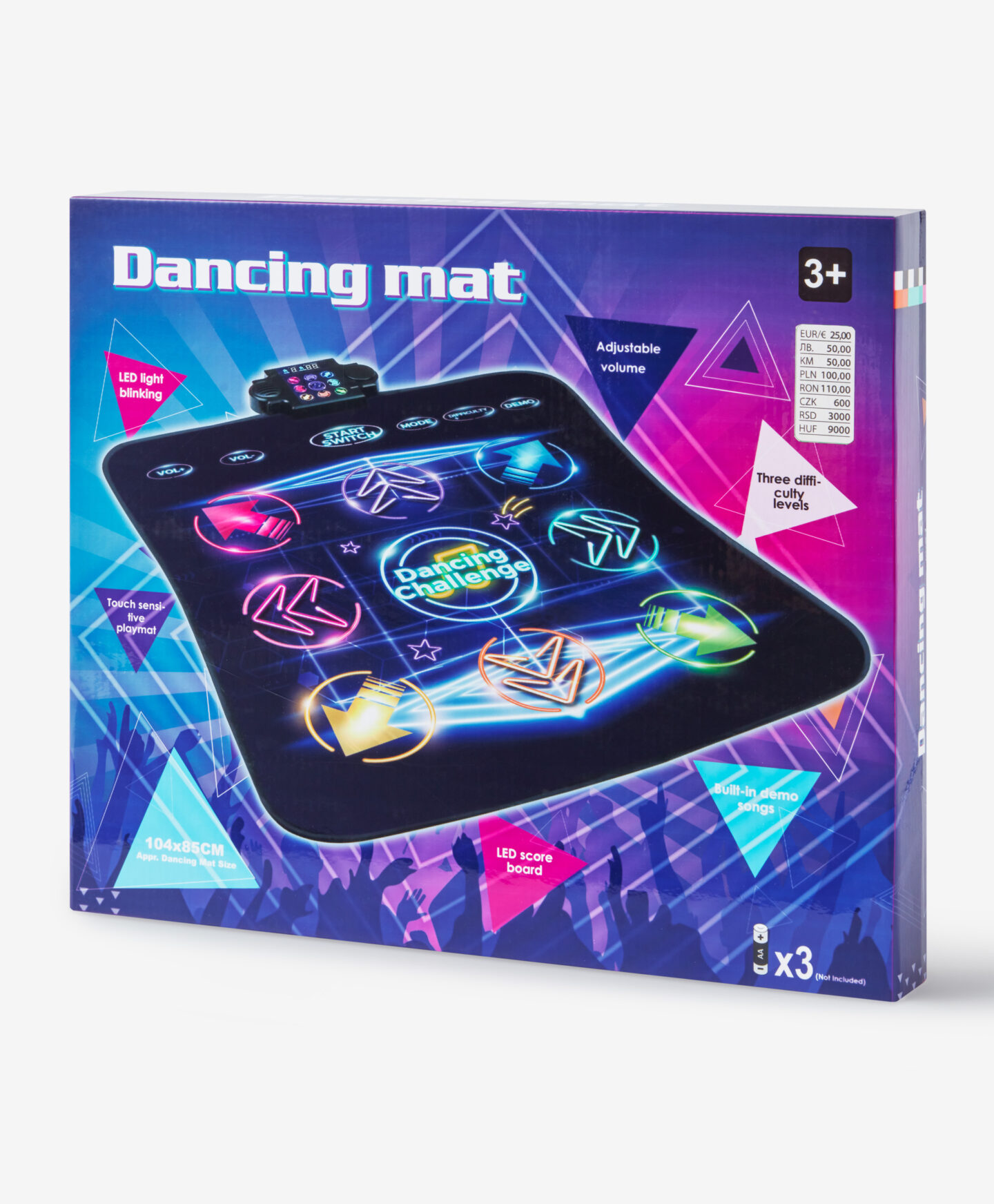 Mata do tańczenia to interaktywna zabawka, która łączy ruch z muzyką. Gracze muszą stawiać kroki zgodnie ze światłami i rytmem, co zapewnia świetną dawkę aktywności fizycznej. To połączenie tańca, zabawy i ćwiczenia refleksu, idealne na wspólne spędzanie czasu. Do wyboru różne piosenki oraz stopnie regulacji głośności.