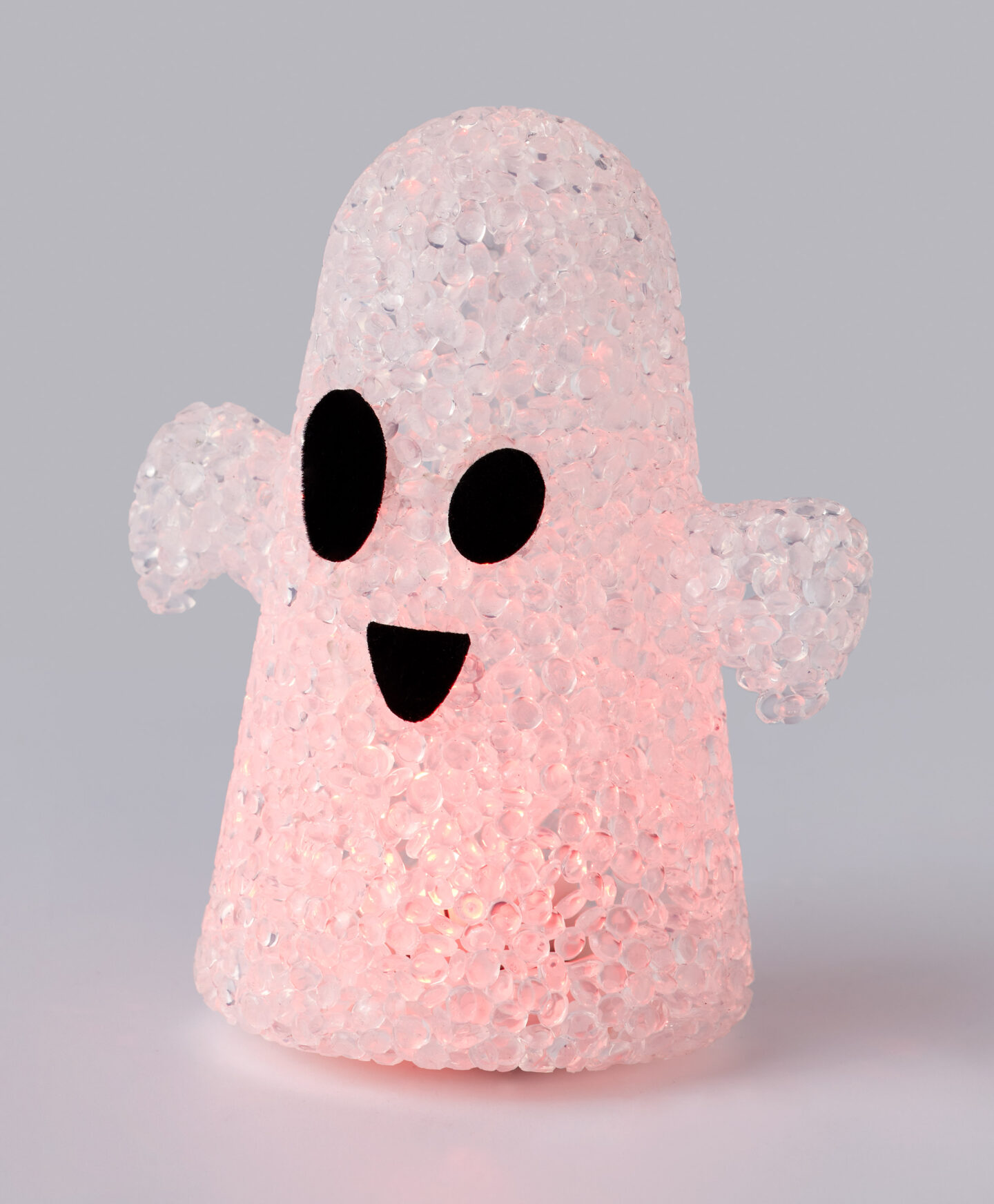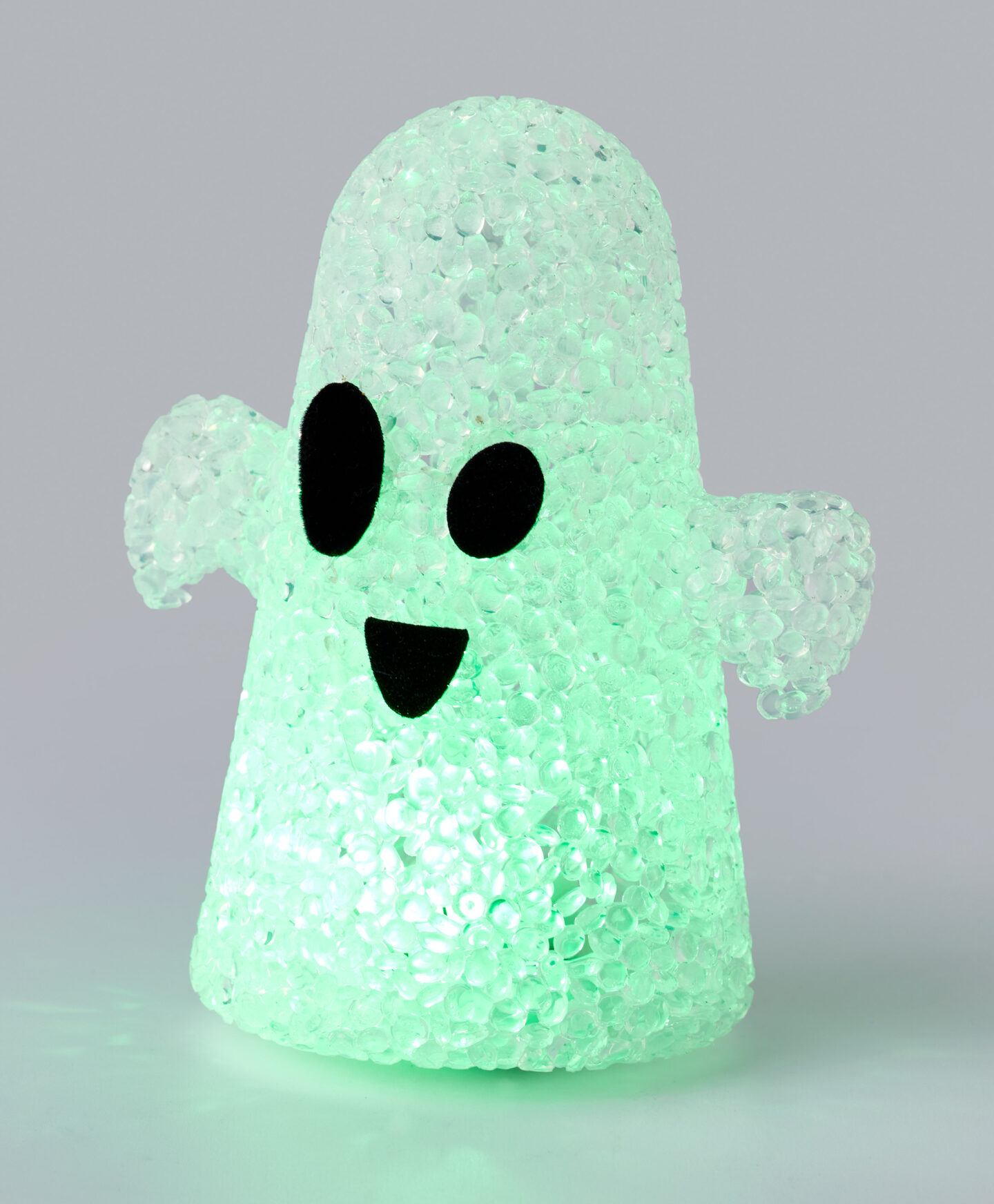 Mini duszek biały LED pokryty jest kryształkami, co czyni go bardzo elegancką dekoracją halloweenową. Nieduży rozmiar i subtelny design sprawiają, że idealnie sprawdzi się na biurku w pracy, komodzie lub regale. Z pewnością zachwyci wszystkich domowników. W ofercie różne kształty.