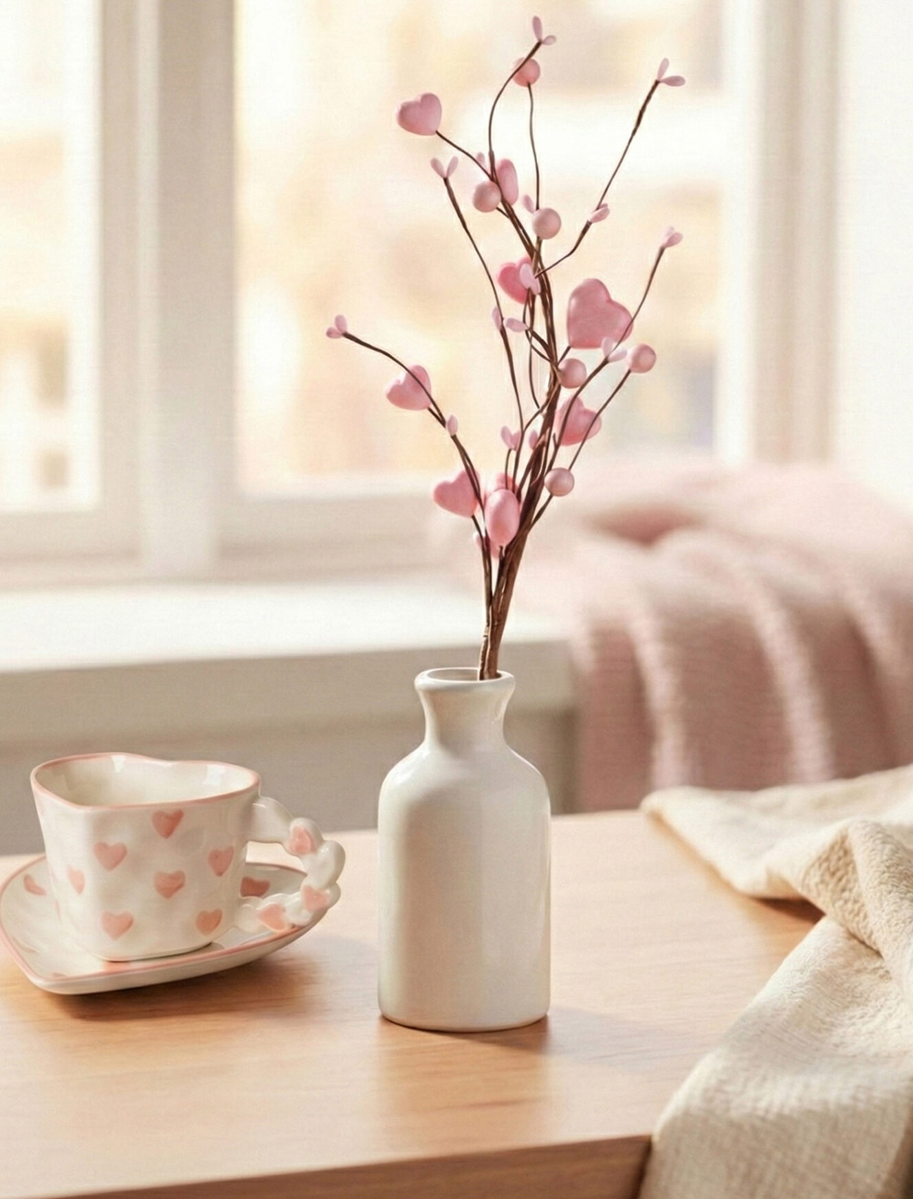 Pik ozdobny różowy pozwoli Ci stworzyć wyjątkową dekorację walentynkową. Świetnie sprawdzi się jako ozdoba w bukietach, doniczkach lub na stole. Elastyczne gałązki zakończone sercami i perełkami dodadzą elegancji i romantyzmu każdemu wnętrzu. W ofercie dwa warianty kolorystyczne.