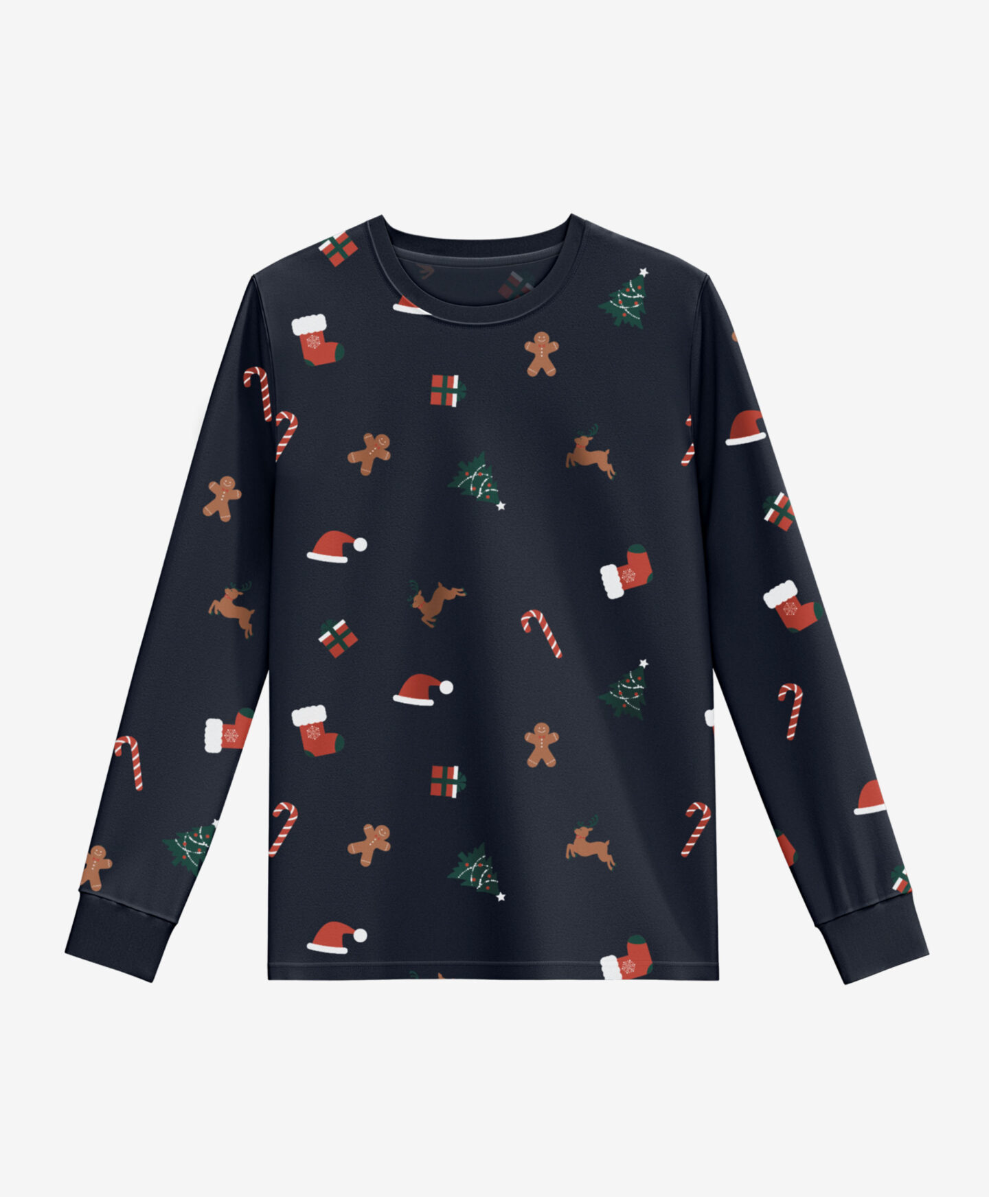 Piżama chłopięca w świąteczny wzór zadowoli każdego śpiocha. Uszyta z miękkiej, oddychającej bawełny, miło otuli dziecko do snu. Zestaw składa się z koszulki z długim rękawem oraz spodni, dlatego świetnie sprawdzi się w zimowe chłodne noce. Świąteczny wzór doda magii długim wieczorom spędzonym w domowym zaciszu.
