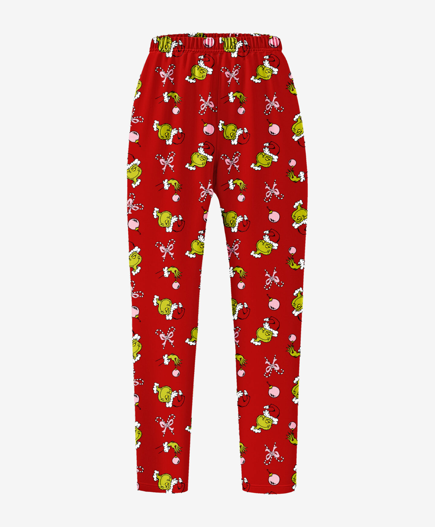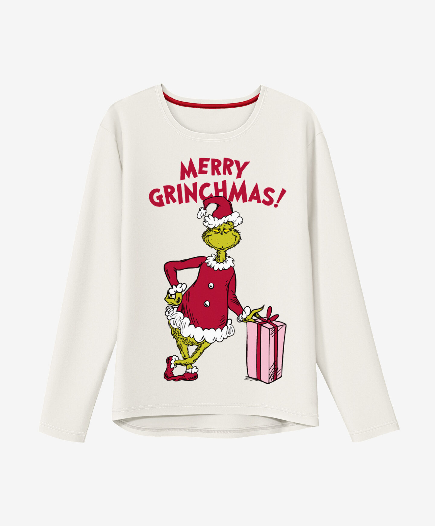 Piżama damska na licencji Grinch 100% bawełny składa się z koszulki z długim rękawem z podobizną kultowego zielonego bohatera na froncie oraz spodni w świąteczny wzór. Uszyta z naturalnych włókien, zadba o Twój komfortowy sen w jesienne i zimowe noce. Piżama będzie również dobrym pomysłem na prezent dla każdego, kto ceni sobie relaks w domowym zaciszu.