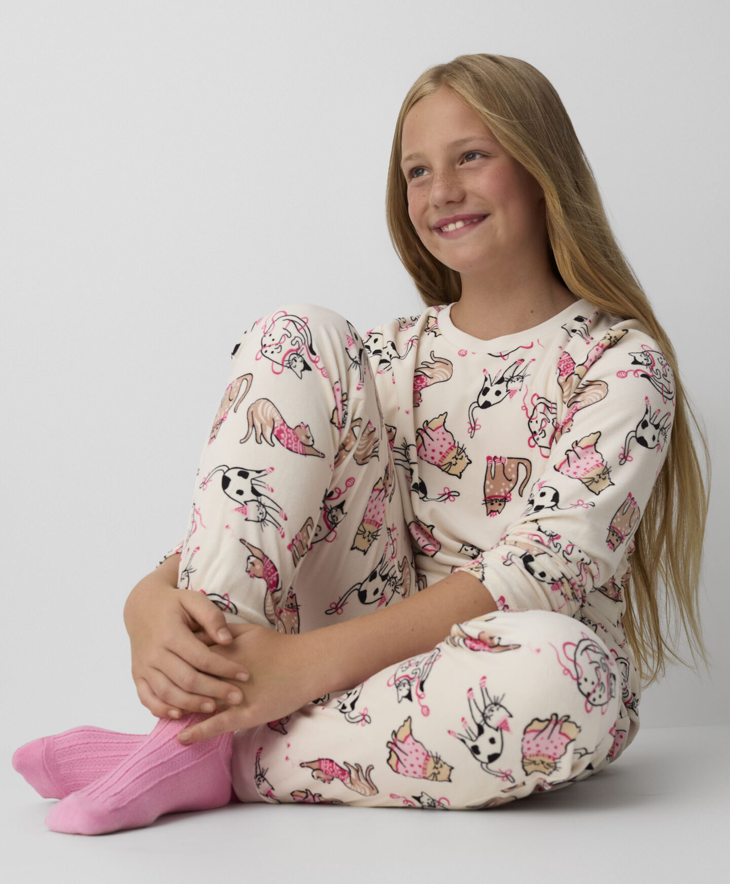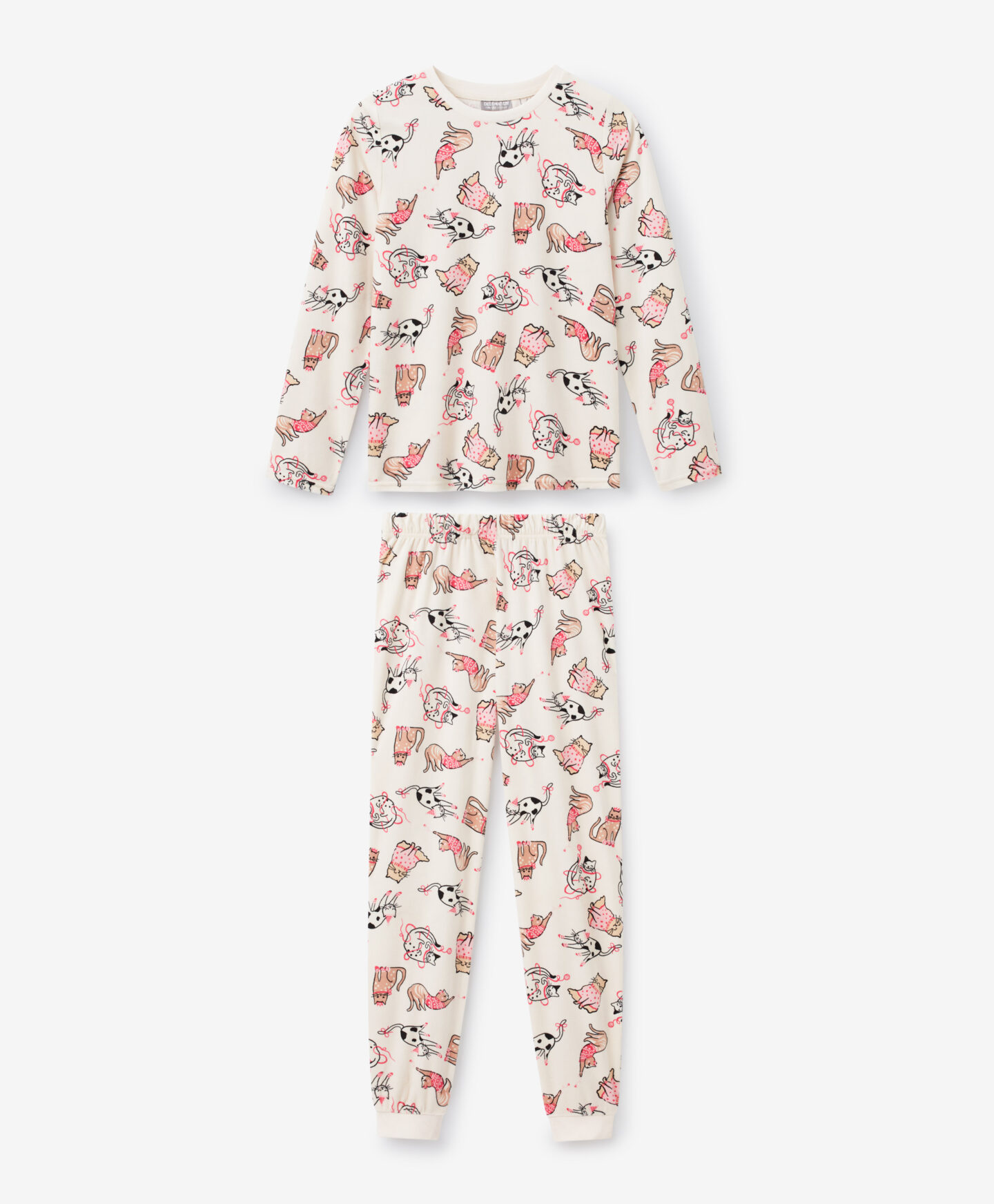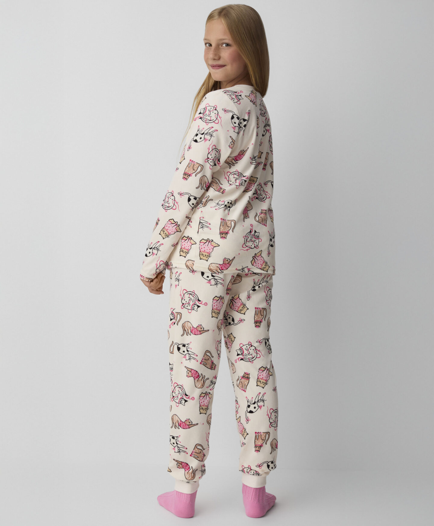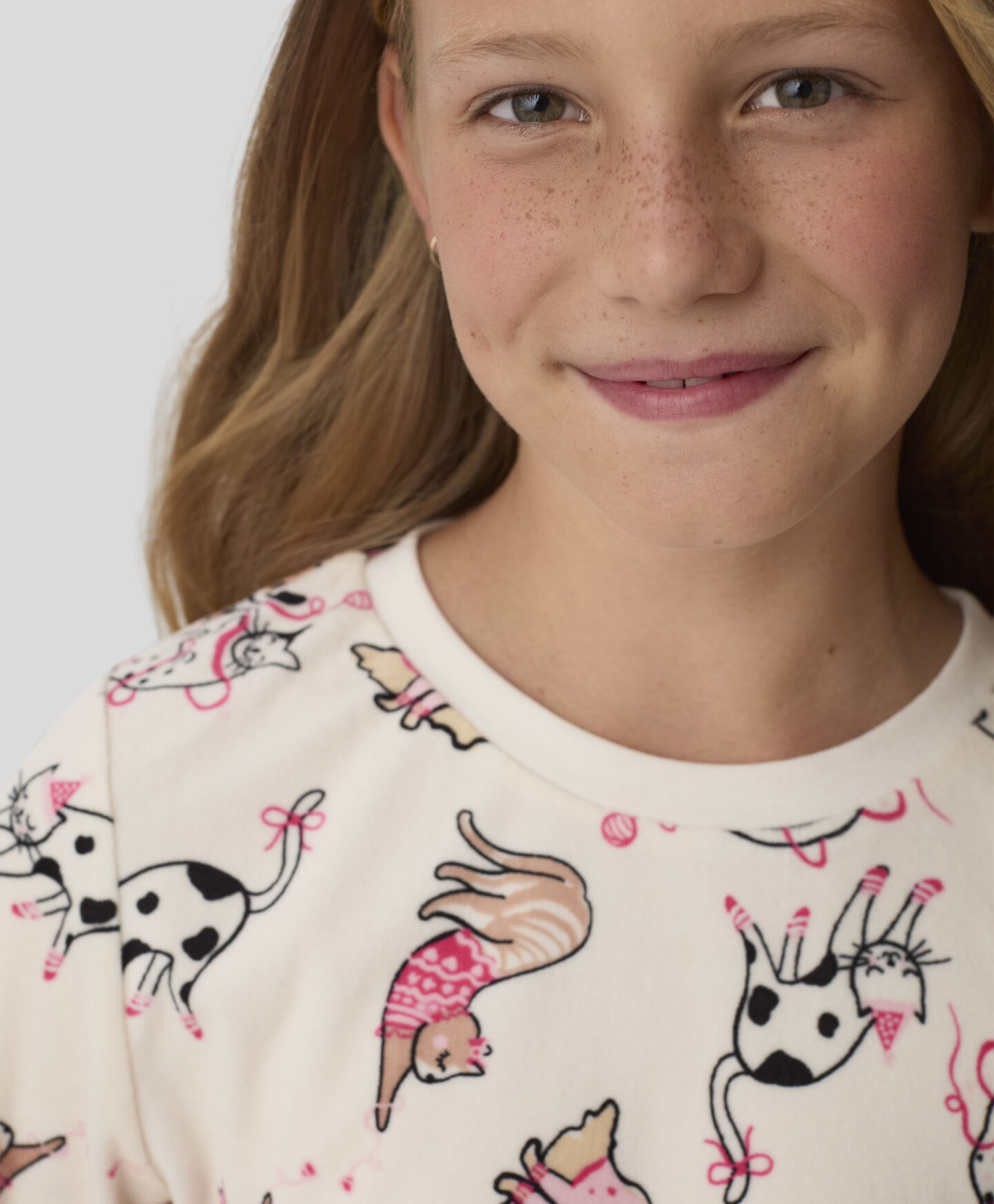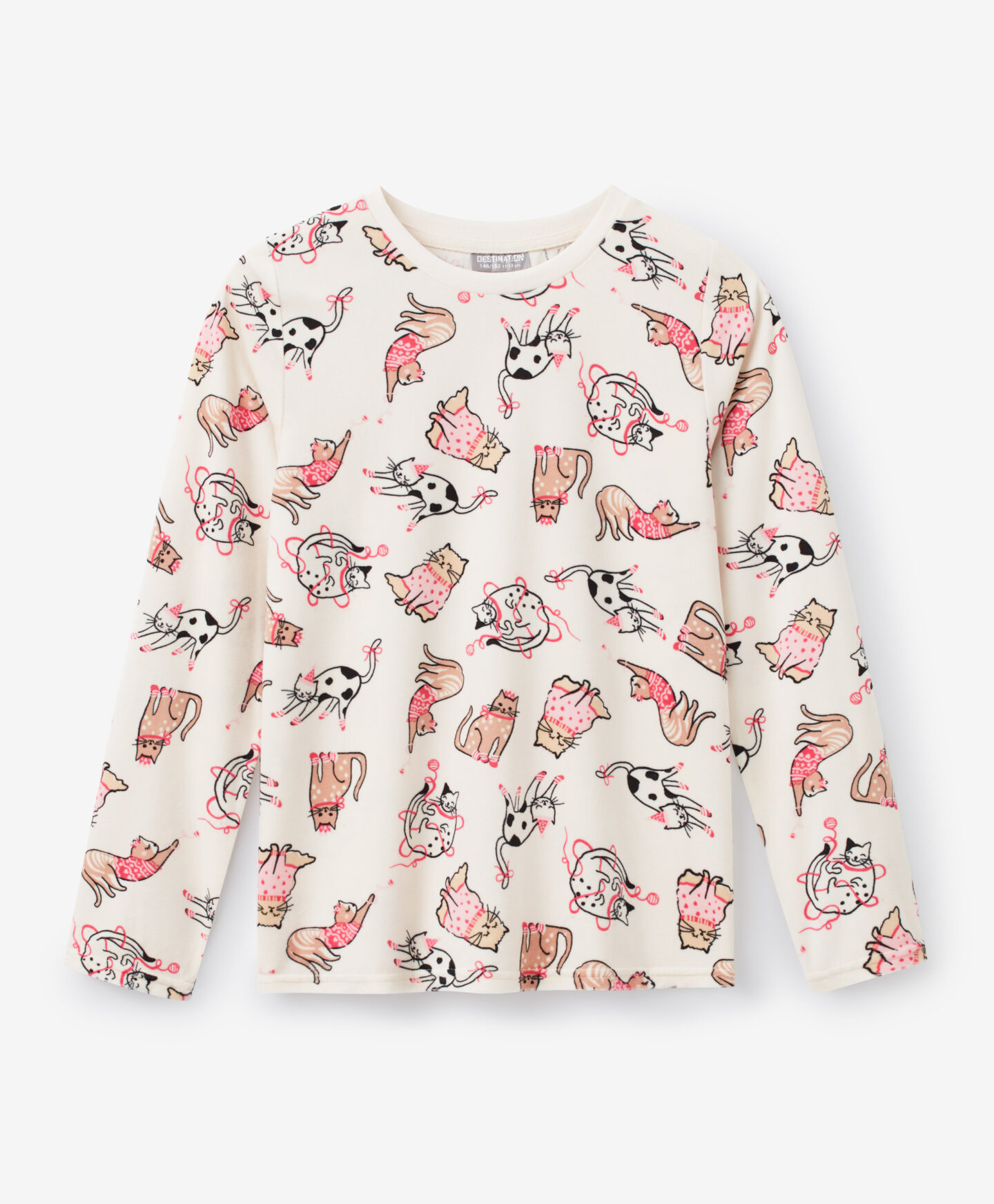 Piżama dziewczęca welurowa w kotki zapewnia komfort snu i swobodę ruchów. Wykonana z miękkiego i przyjemnego w dotyku weluru, zapewnia ciepło i przytulność. Zabawne wzory z motywem kotków sprawią, że każda dziewczyna z chęcią będzie ją zakładać przed snem. Idealna na chłodniejsze noce. Doskonały wybór dla miłośniczek kotów.