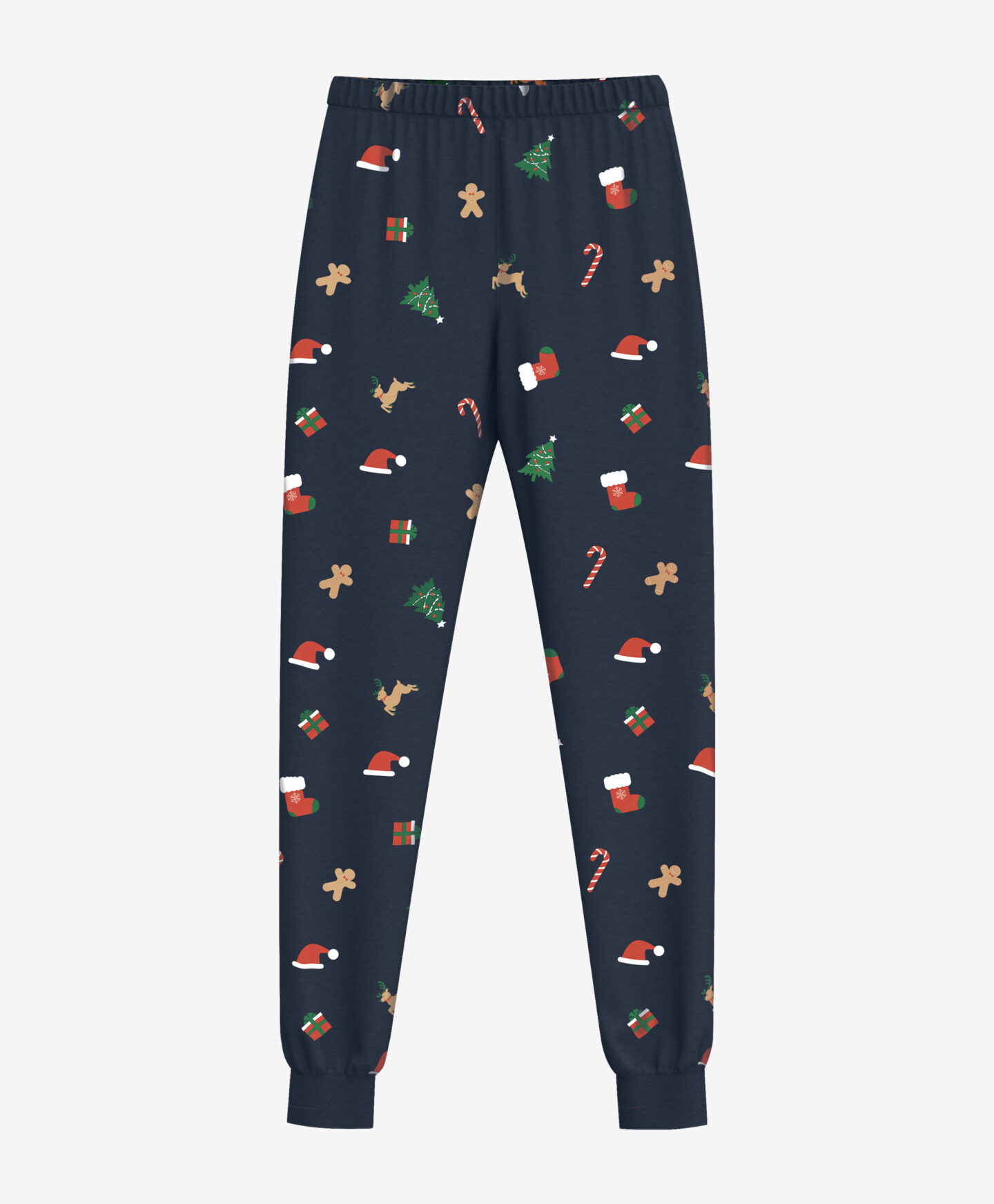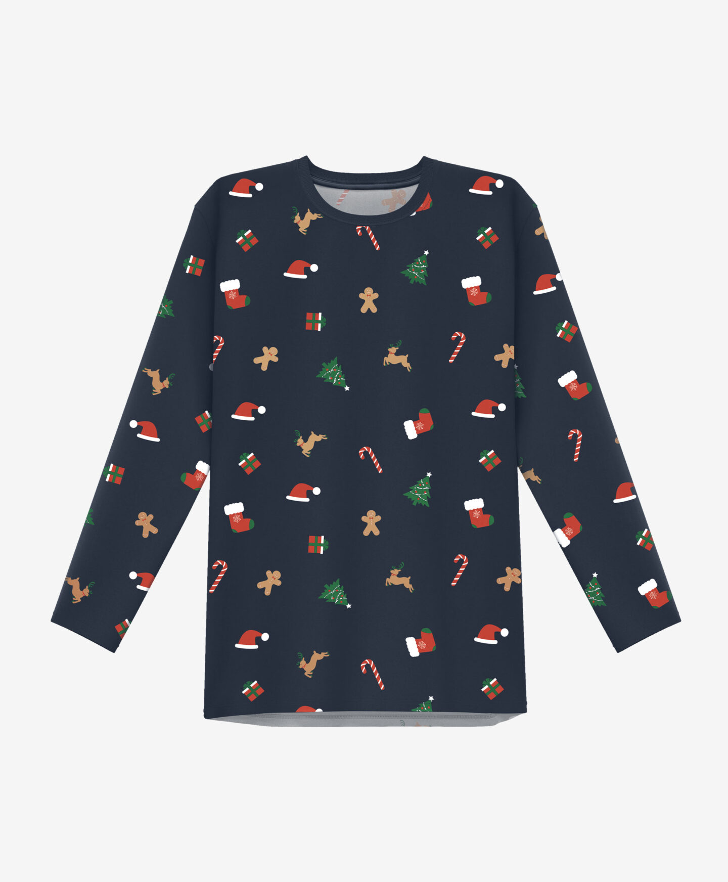 Piżama męska w świąteczny wzór składa się z koszulki z długim rękawem i spodni. Głęboki granatowy kolor przełamany został bożonarodzeniowym wzorem prezentów, choinek, pierniczków i lasek cukrowych. To doskonały pomysł na gwiazdkowy lub mikołajkowy upominek dla miłośników słodkiego lenistwa. W ofercie dostępne są także piżamy chłopięce.