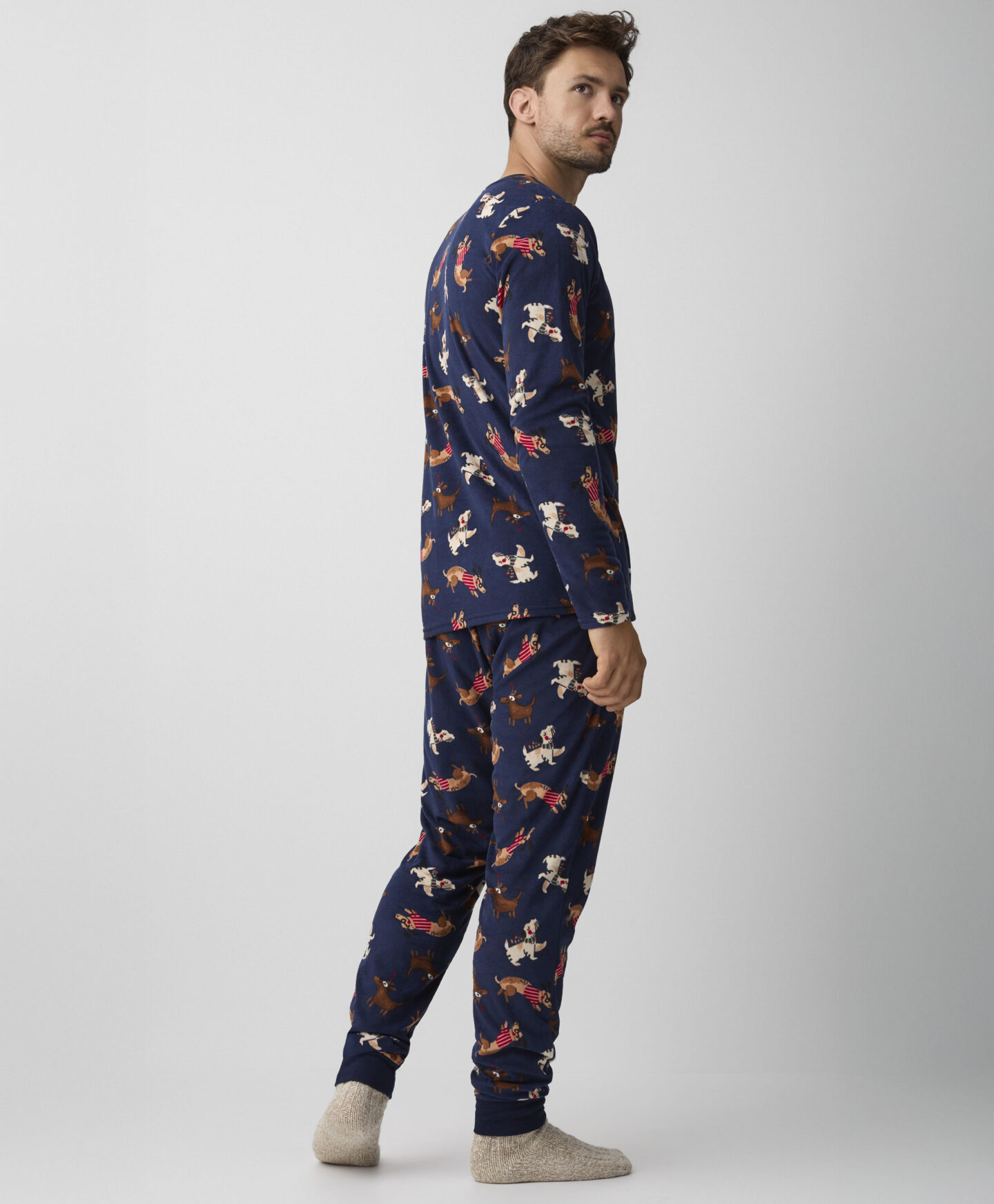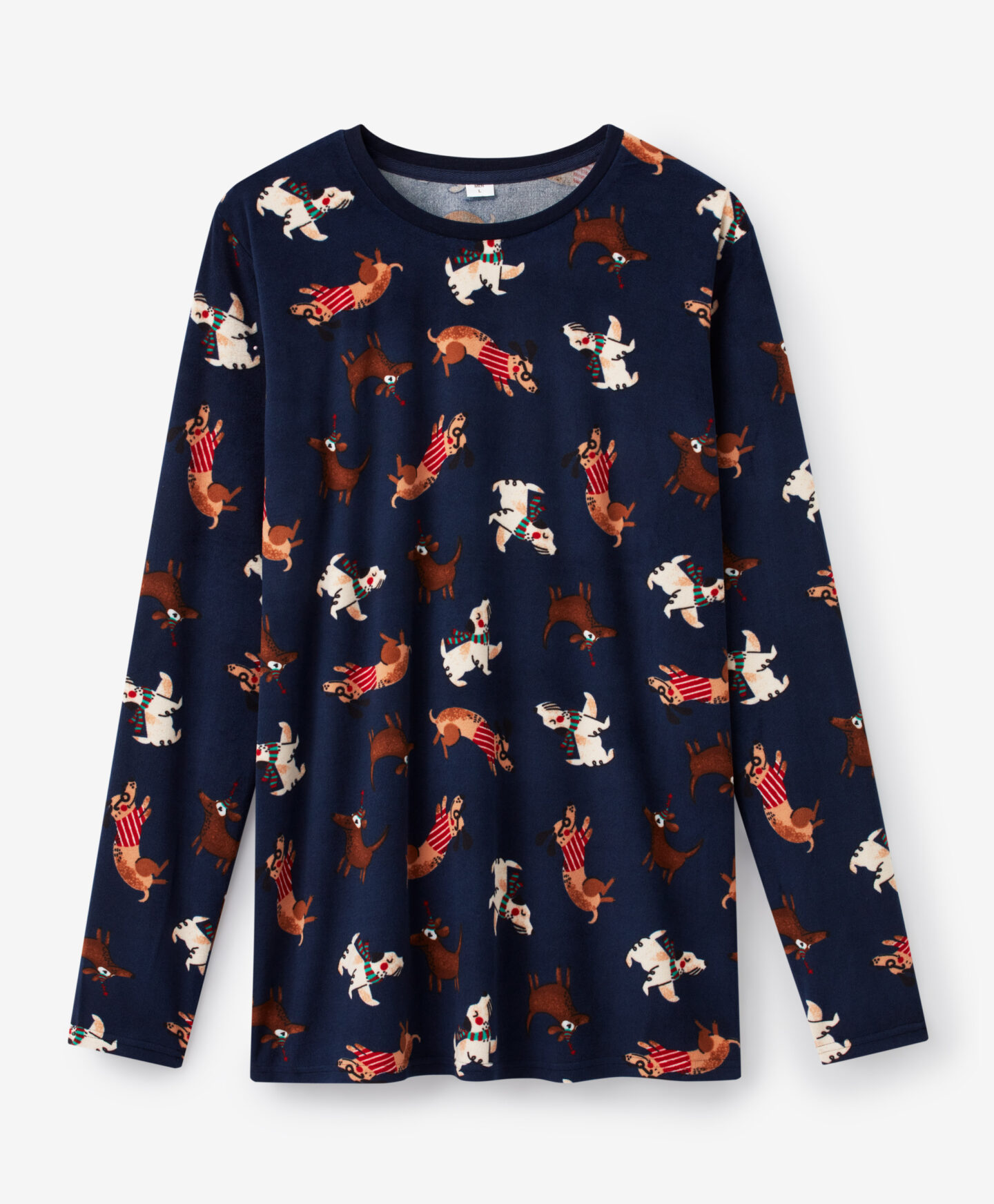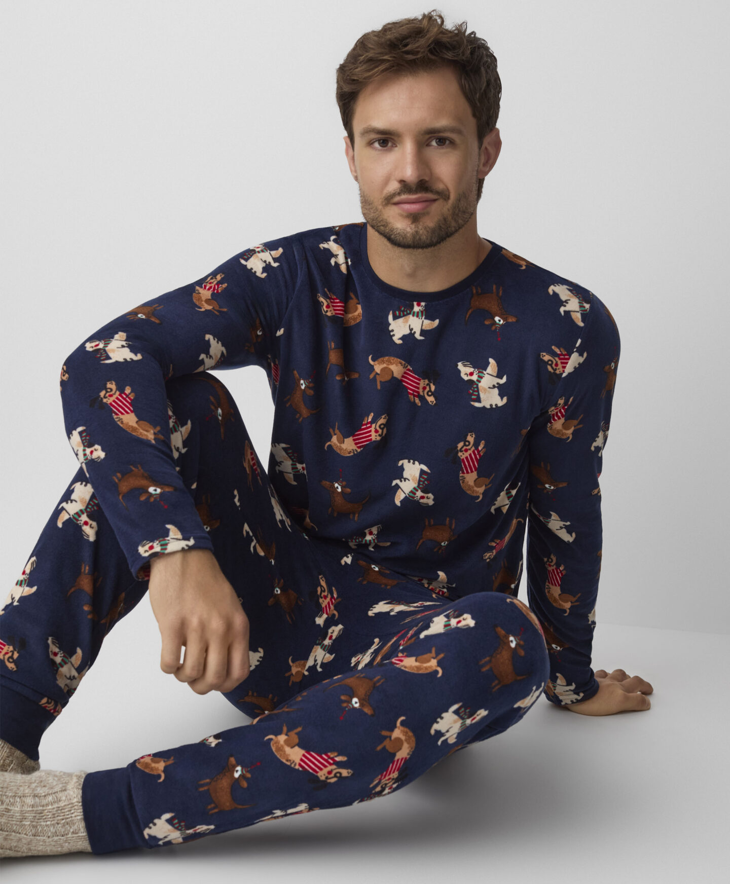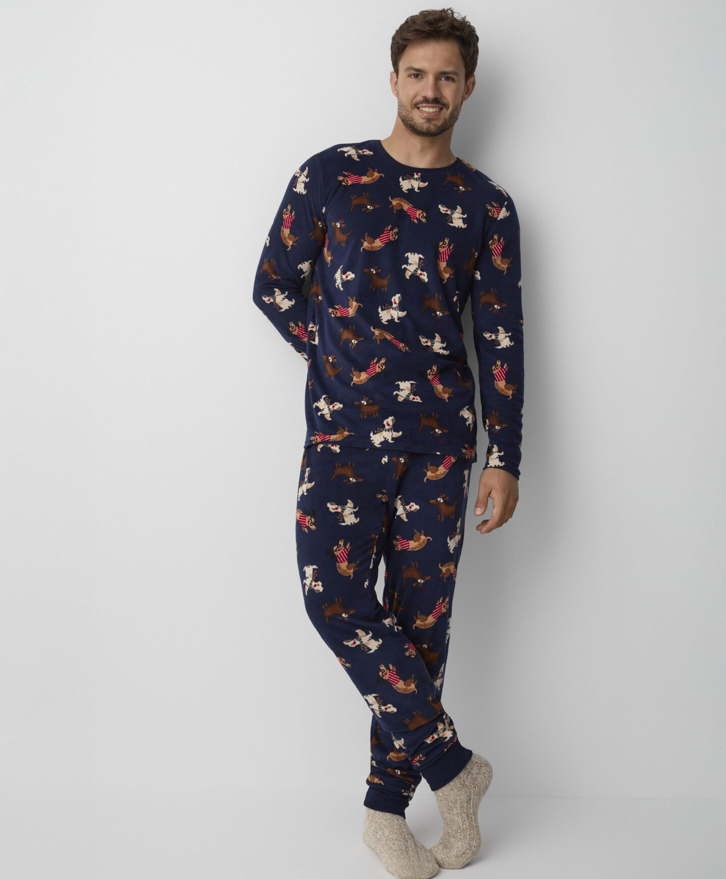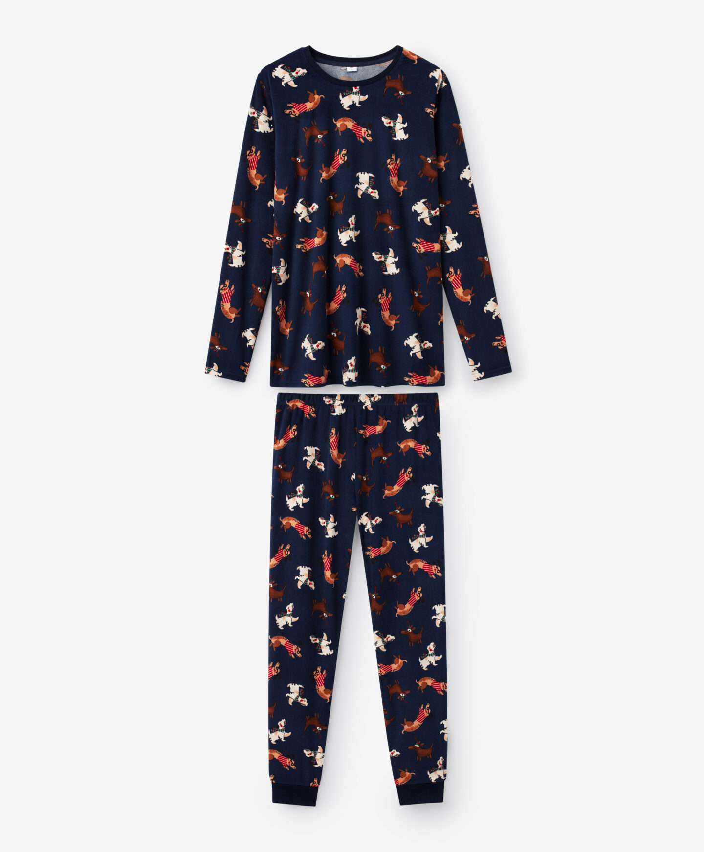 Piżama męska welurowa w pieski jest idealna na chłodniejsze dni. Wykonana z miękkiego i przyjemnego w dotyku weluru, zapewnia ciepło, komfort snu i przytulność. Zabawne wzory z motywem piesków sprawią, że każdy z chęcią będzie ją zakładać przed snem. Idealna dla miłośników tych czworonogów.