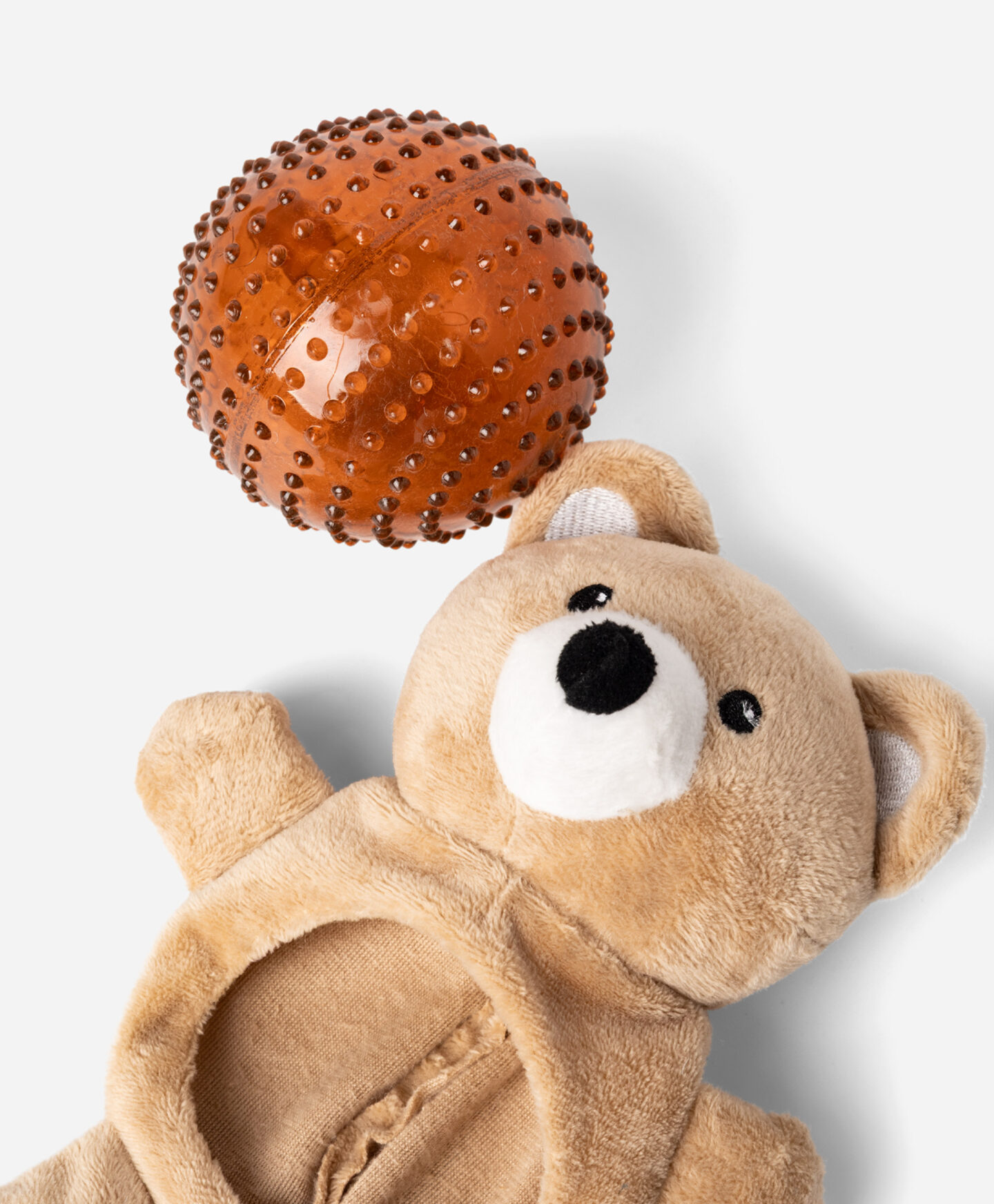 Pluszowa zabawka dla psa beżowa to idealne rozwiązanie dla czworonogów, które uwielbiają interaktywne i miękkie zabawki. Wykonana z delikatnego, ale trwałego materiału, zapewnia bezpieczeństwo podczas zabawy, a dołączona piłka dodaje frajdy i zachęca psa do aktywności.