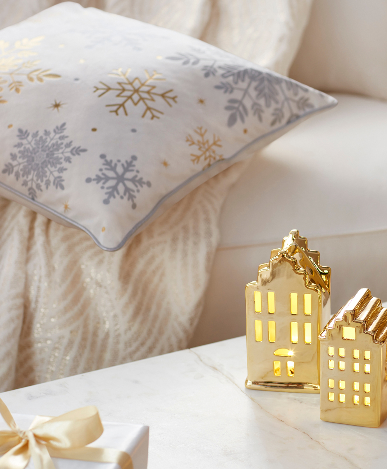 Poszewka w śnieżynki to elegancki i uniwersalny dodatek, który w subtelny sposób podkreśli świąteczną aranżację. Białe tło poszewki ozdobiono misternymi, srebrnymi śnieżynkami, które mienią się w świetle, tworząc efekt oszronienia. Idealnie wpasuje się zarówno w minimalistyczny, jak i bardziej klasyczny wystrój, dodając sofie lub fotelowi odrobinę chłodnej, zimowej elegancji. To idealny sposób na szybką metamorfozę wnętrza.