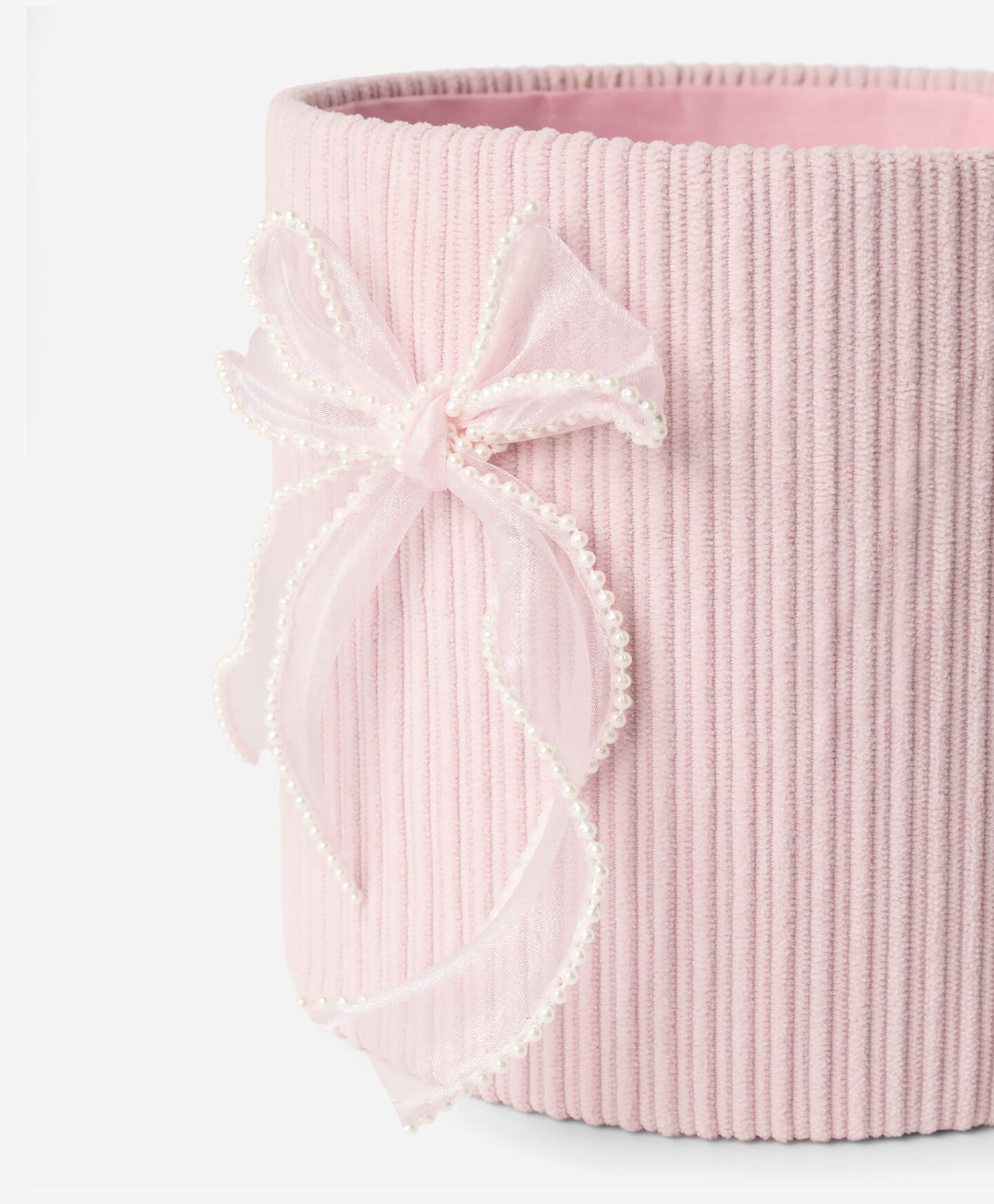 Pudełko okrągłe małe z kokardą to subtelny dodatek do każdego pomieszczenia. Idealnie sprawdzi się do przechowywania drobnych przedmiotów, takich jak biżuteria, klucze czy inne drobiazgi lub jako dekoracja. Brak pokrywki ułatwia szybki dostęp do zawartości. Stylowy design sprawia, że postawisz je zarówno na szafce nocnej w sypialni, jak i na biurku w biurze.