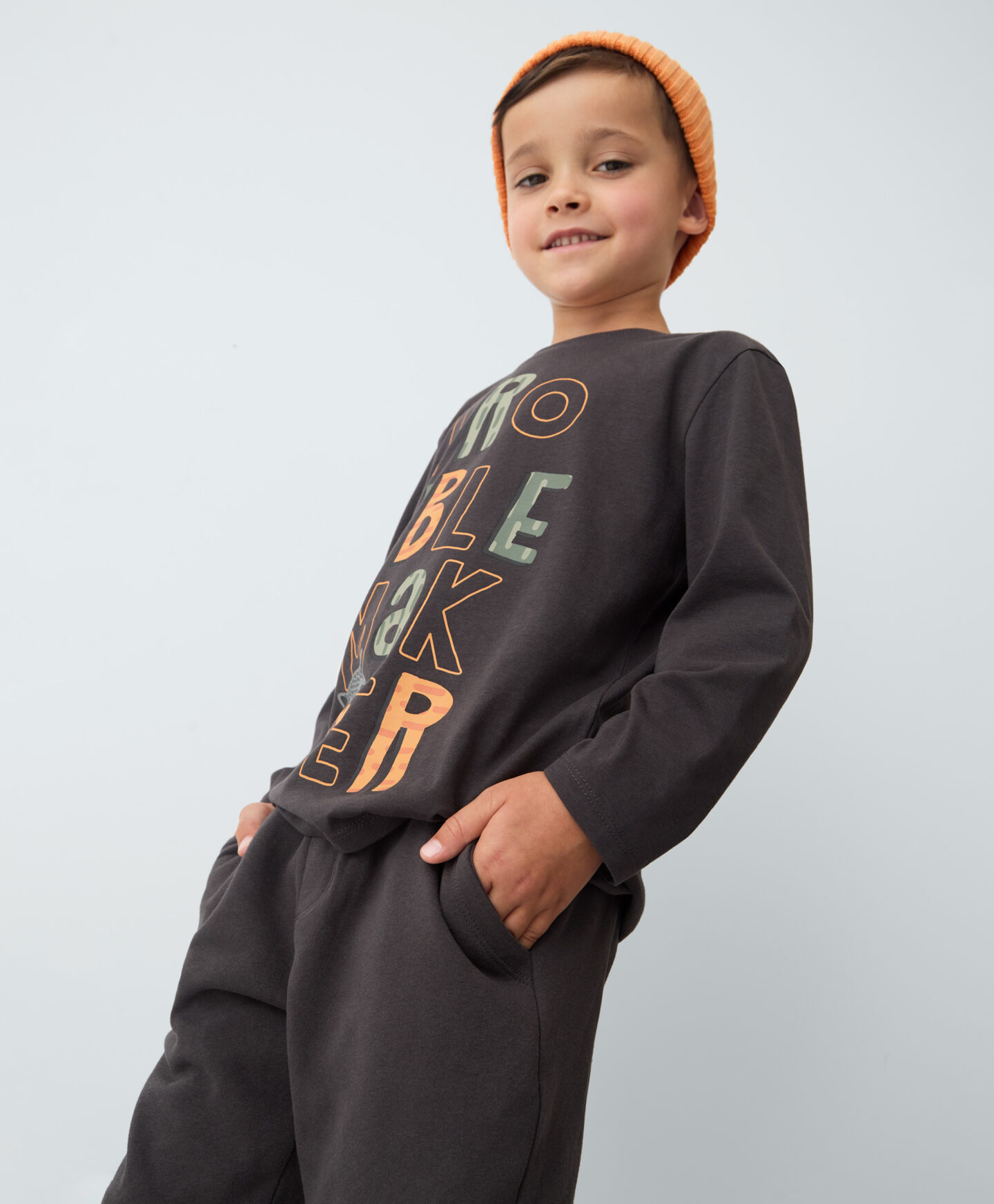 Spodnie chłopięce sportowe z wysoką zawartością bawełny to must-have jesiennej garderoby. Wykończone elastycznymi mankietami, zapewniają ciepło i wygodę noszenia. Miły dla skóry materiał delikatnie otula sylwetkę, zapewniając dziecku komfort każdego ruchu. W ofercie dostępna idealnie pasująca koszulka z długim rękawem.