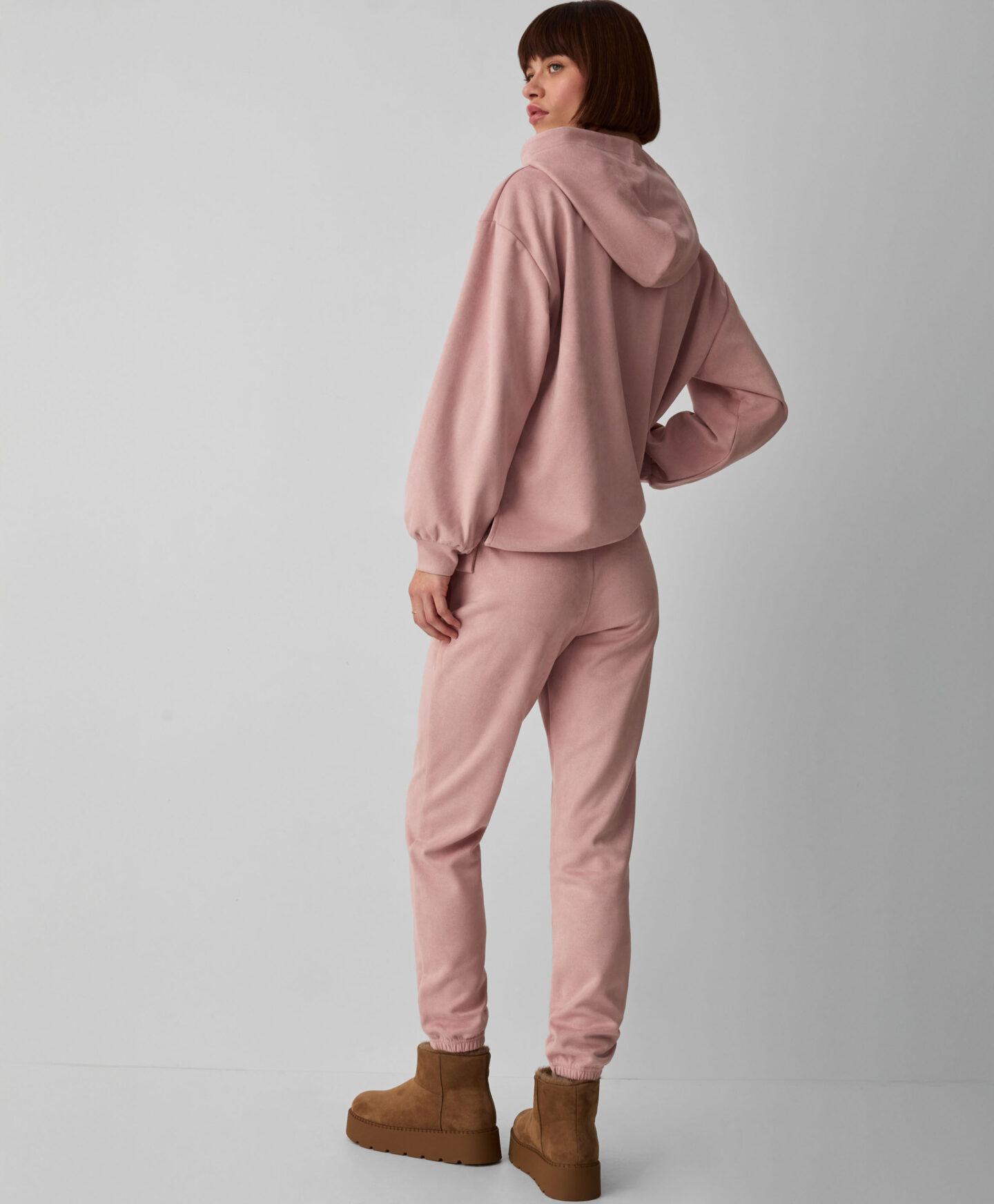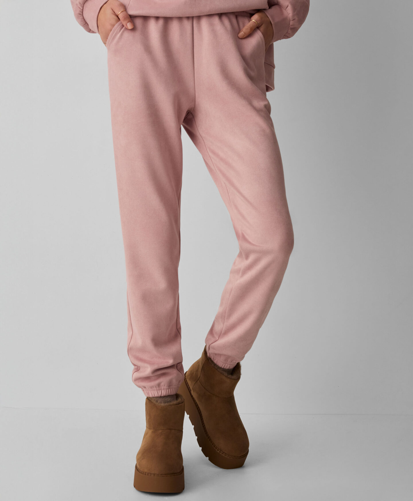 Spodnie damskie zamszowe różowe z kieszeniami to stylowa i wygodna propozycja na co dzień. Spodnie są miękkie, miłe w dotyku i świetnie sprawdzą się na jesiennych spacerach. Zgaszony odcień różu idealnie pasuje do bluzy z kapturem z oferty. W ofercie różne wzory do wyboru.