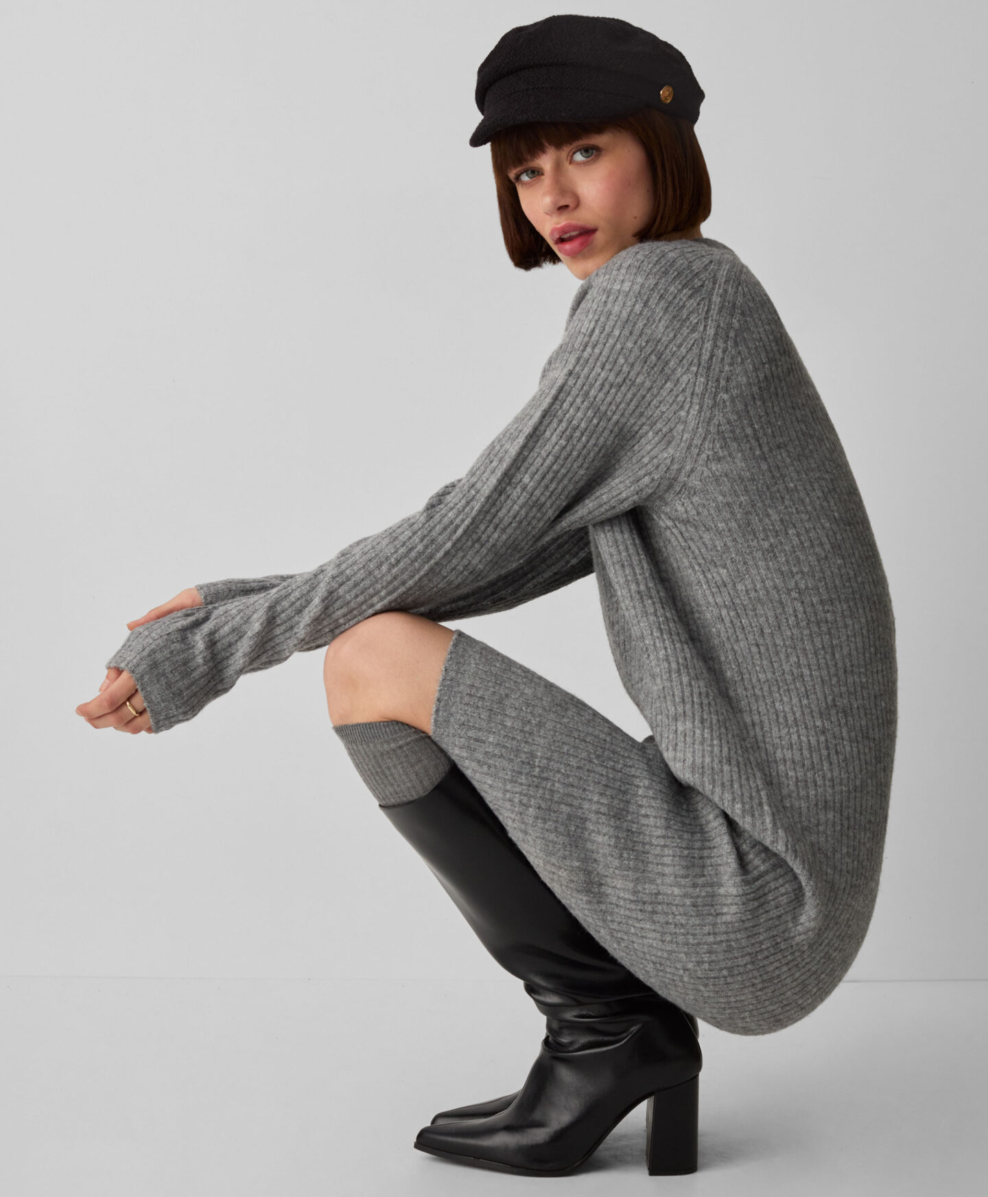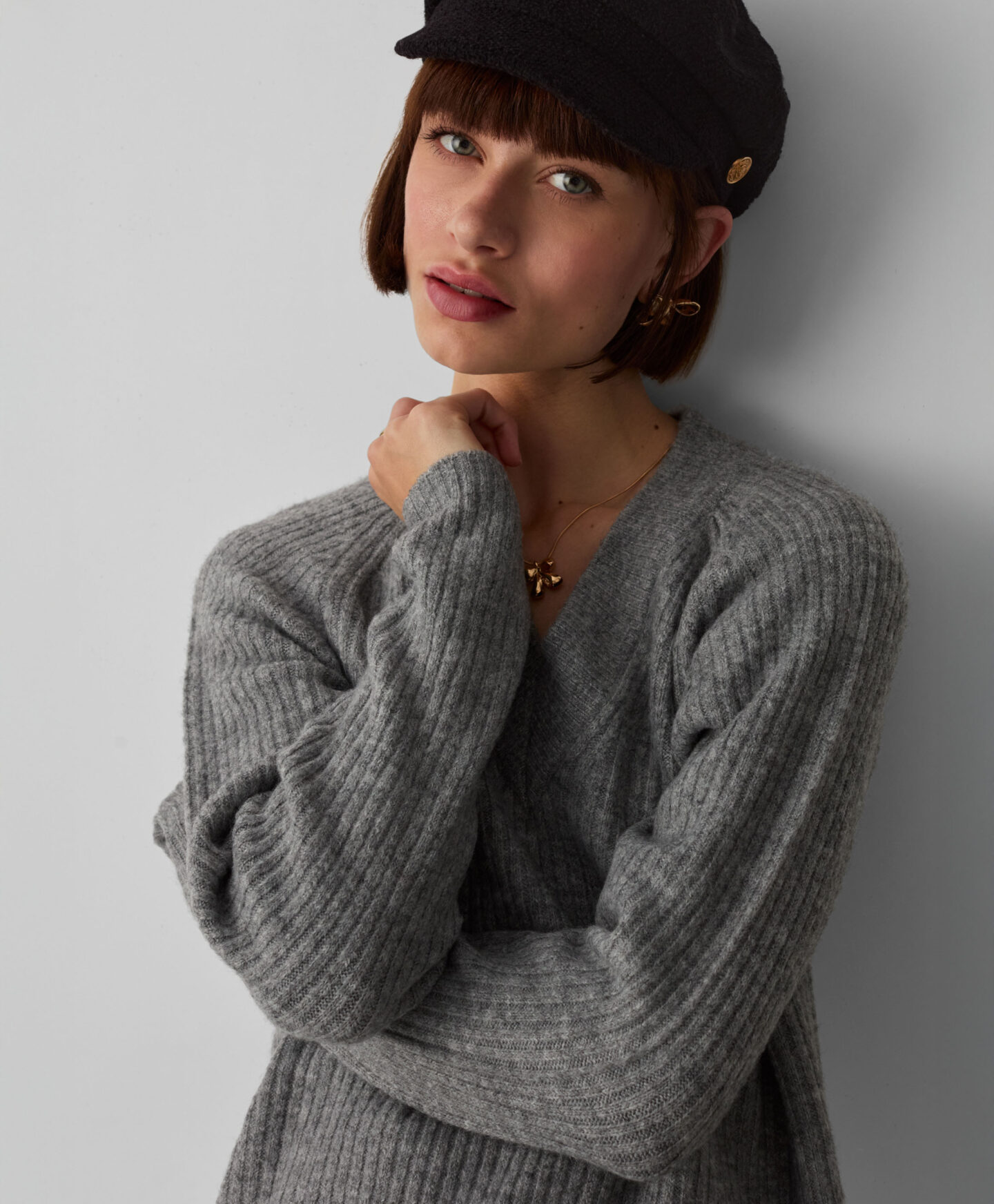 Sukienka damska swetrowa z dekoltem w serek stanie się bohaterką wielu jesiennych stylizacji. Dłuższy krój, stonowany kolor oraz kobiecy dekolt sprawiają, że sukienka sprawdzi się zarówno do biura, jak i w czasie wolnym. Idealnie pasuje do legginsów, jegginsów czy grubszych rajstop, a uzupełniona o kozaki lub botki stworzy modne i uniwersalne połączenie.