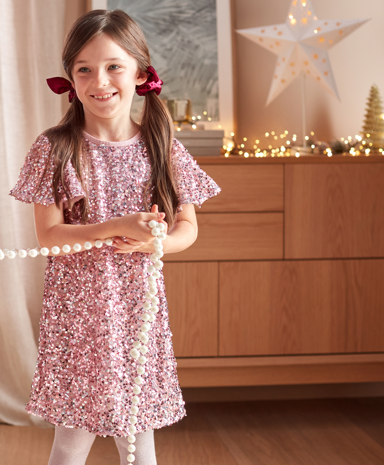 Sukienka dziewczęca z cekinami pozwoli każdej dziewczynce poczuć się wyjątkowo. Błyszczące cekiny pięknie odbijają światło, nadając kreacji magicznego charakteru. To idealny wybór dla dziewczynki, która lubi wyróżniać się i błyszczeć w każdej sytuacji.