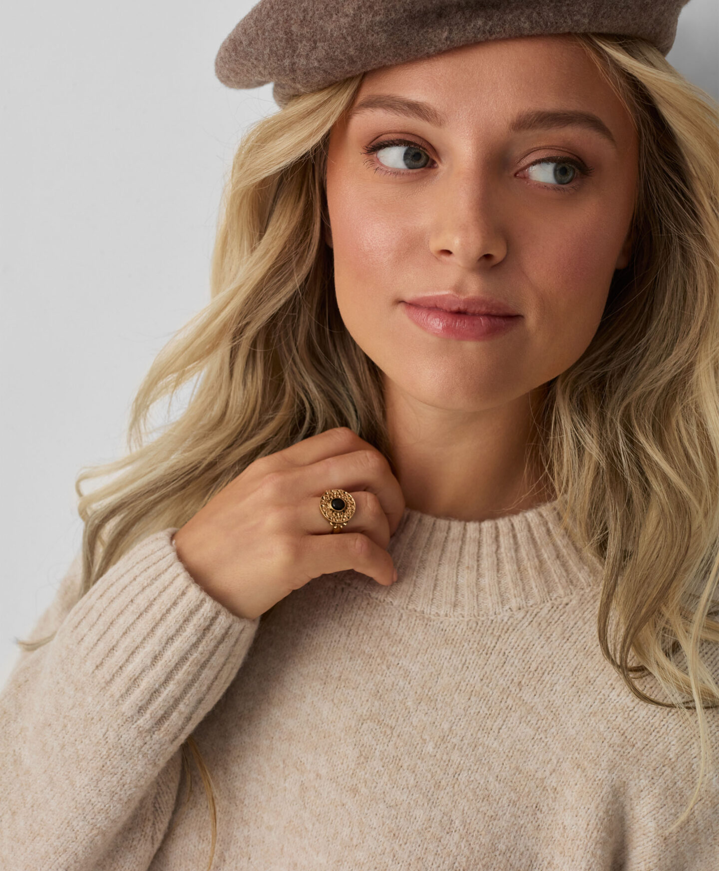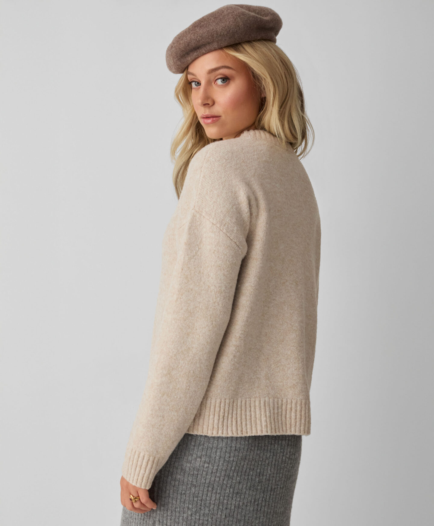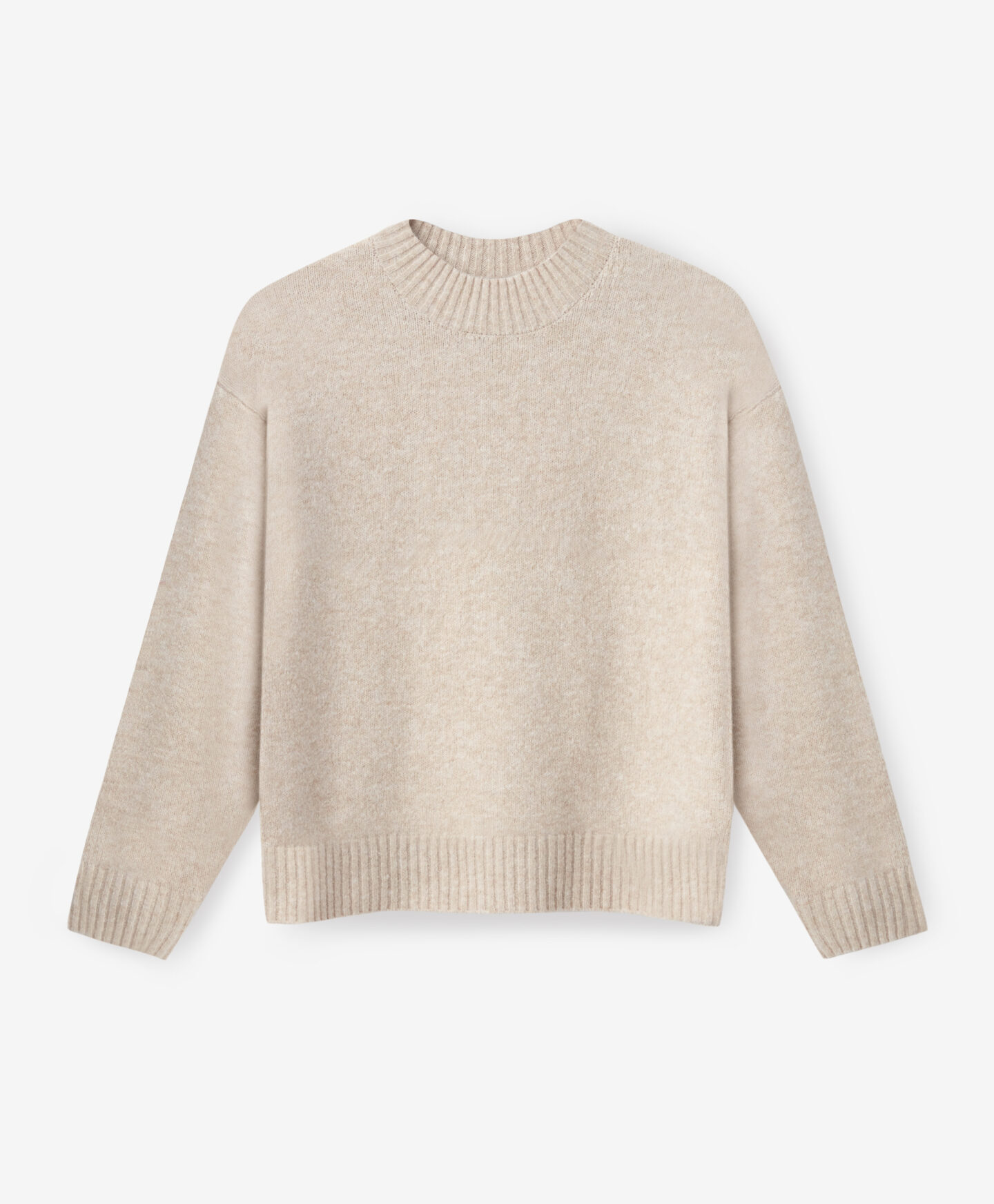 Sweter damski gładki beżowy e stójką to sposób na jesienne i zimowe chłody. Jest gruby, ciepły i stylowy. Doskonały do biura, na spotkania ze znajomymi czy załatwianie codziennych spraw na mieście. Świetnie będzie prezentował się z jeansami, eleganckimi spodniami, jak i tymi w bardziej sportowym wydaniu. W ofercie dwa warianty kolorystyczne.