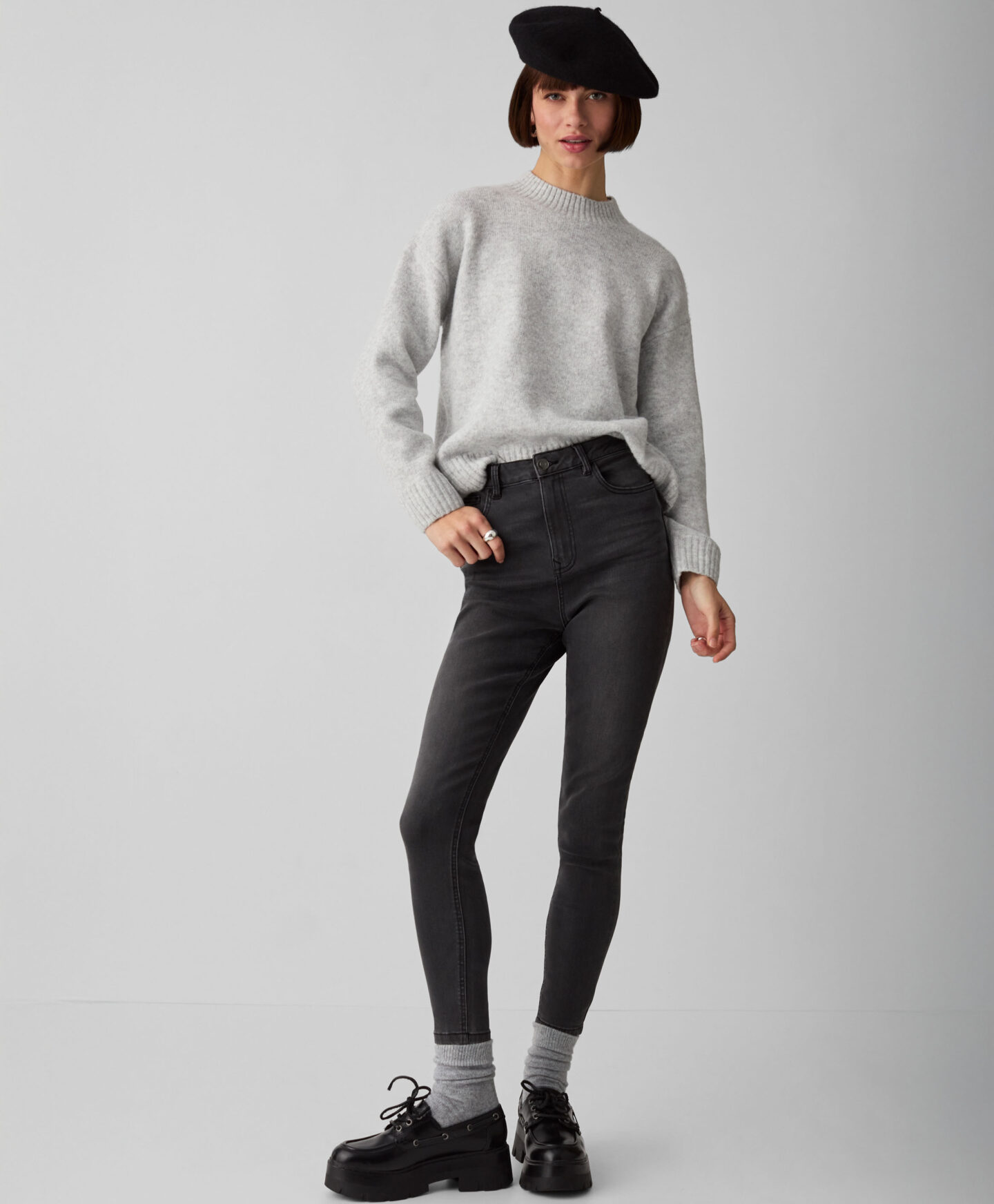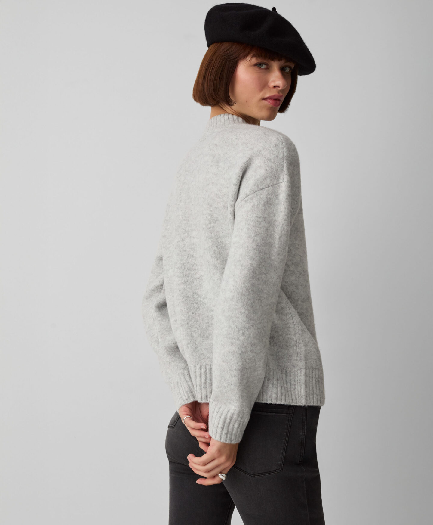 Sweter damski gładki szary ze stójką to sposób na jesienne i zimowe chłody. Jest gruby, ciepły i stylowy. Doskonały do biura, na spotkania ze znajomymi czy załatwianie codziennych spraw na mieście. Świetnie będzie prezentował się z jeansami, eleganckimi spodniami, jak i tymi w bardziej sportowym wydaniu. W ofercie dwa warianty kolorystyczne.