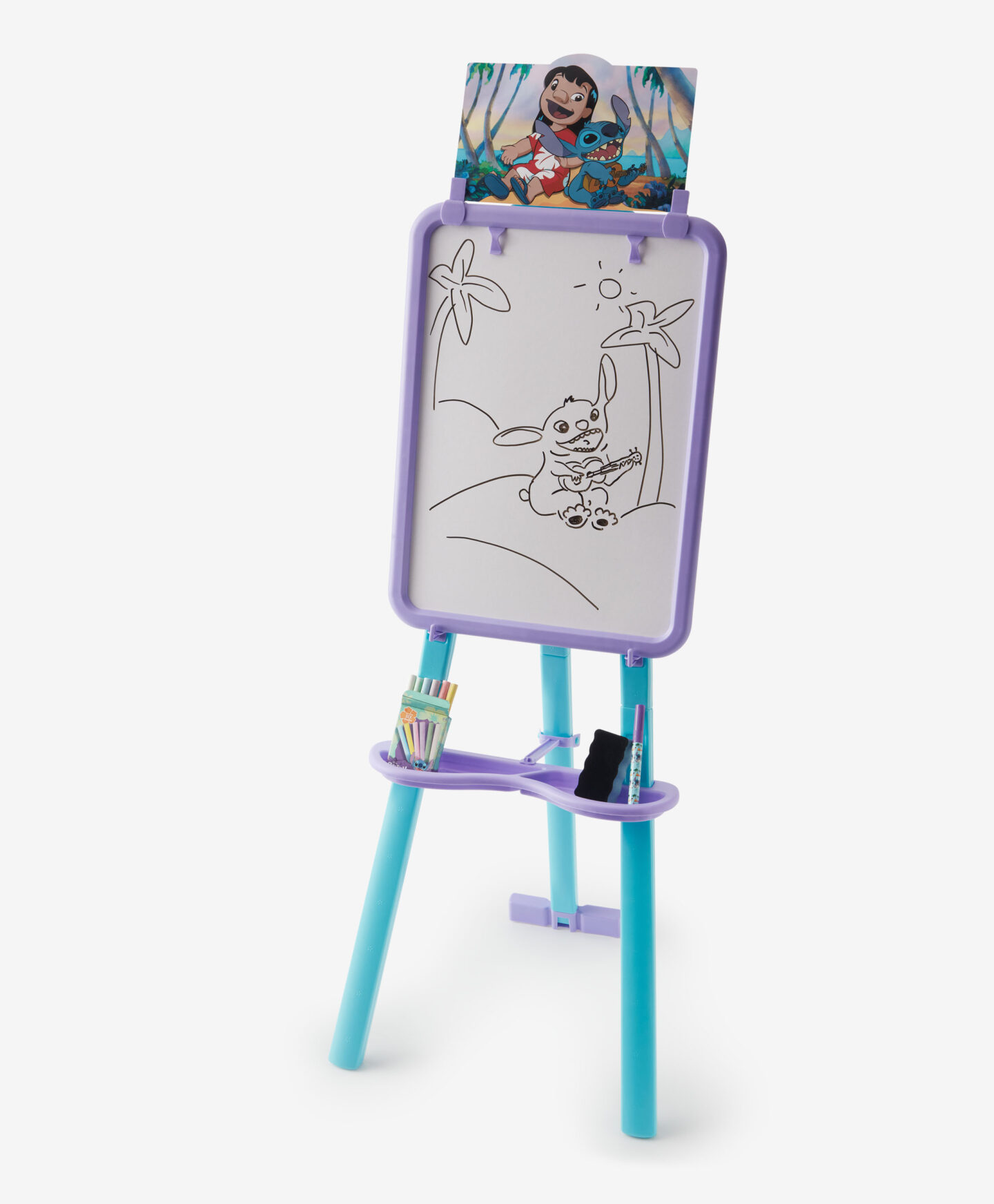 Tablica stojąca Stitch to praktyczna pomoc do twórczej nauki i zabawy. Jest dwustronna – jedna strona przeznaczona do pisania flamastrami, a druga do rysowania kredą. Stabilna konstrukcja i bajkowe zdobienia sprawiają, że dzieci chętnie spędzają przy niej czas. Dzięki temu tablica rozwija kreatywność i ułatwia naukę w atrakcyjnej formie.