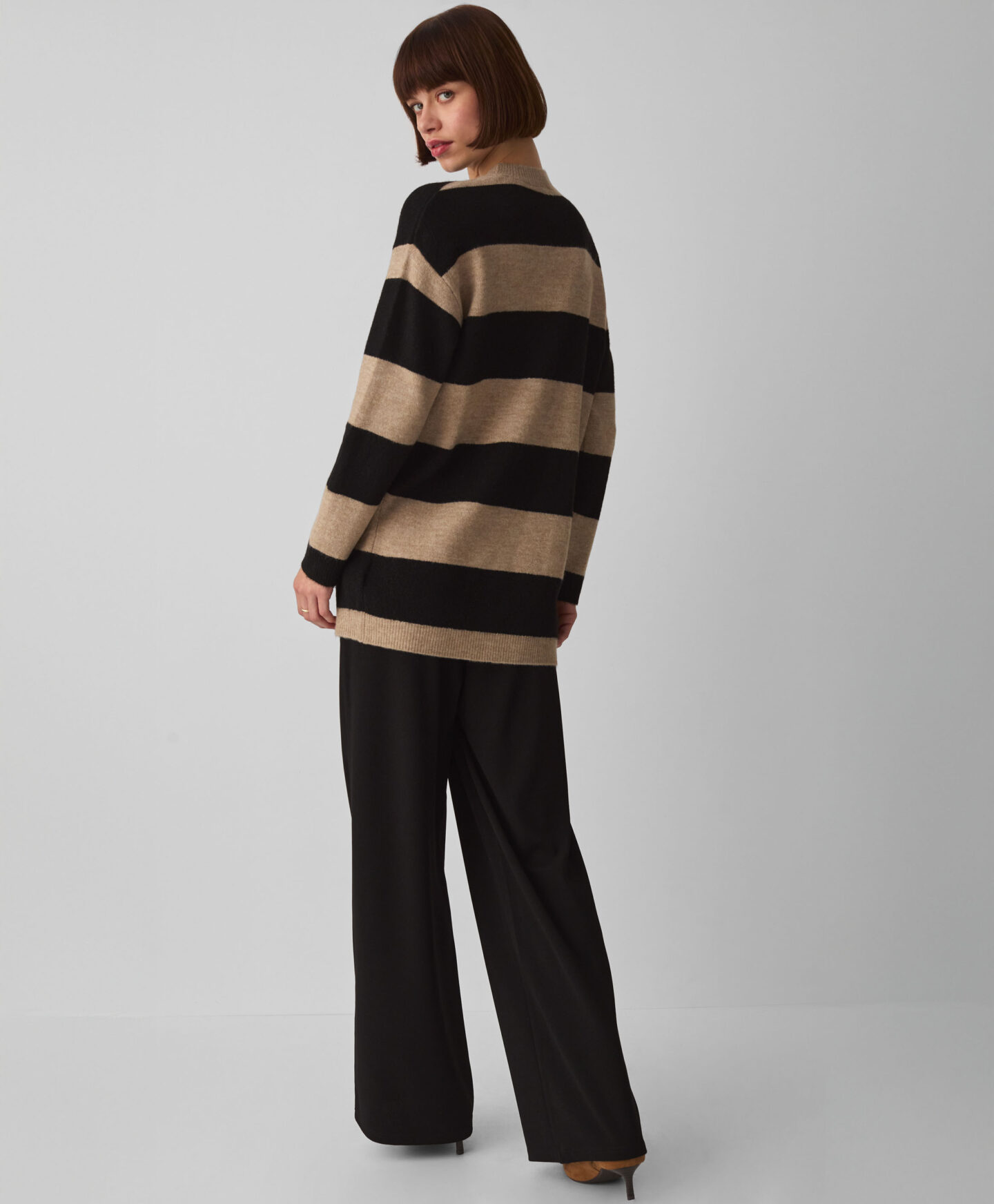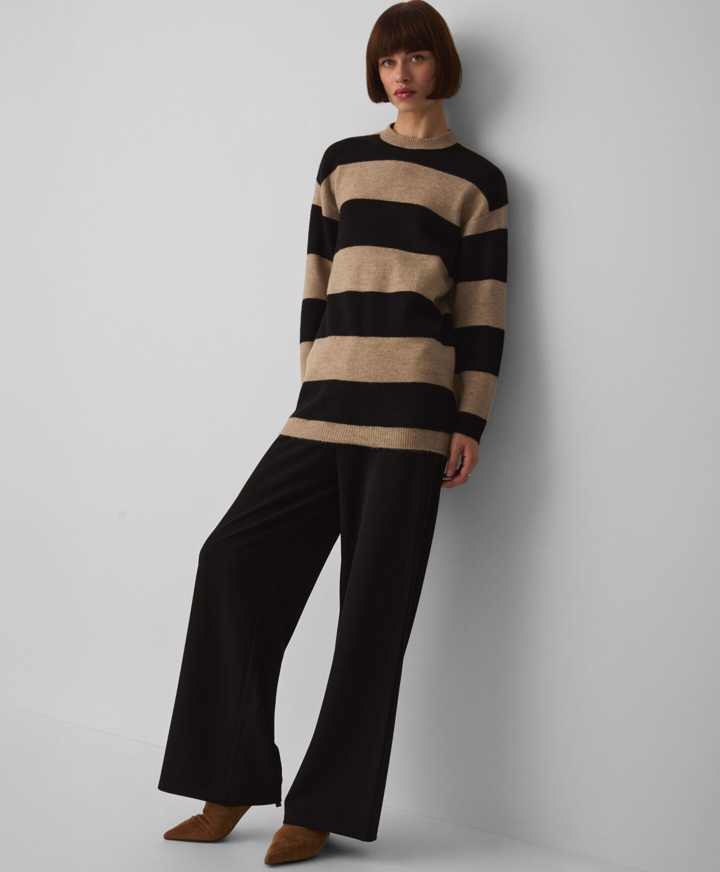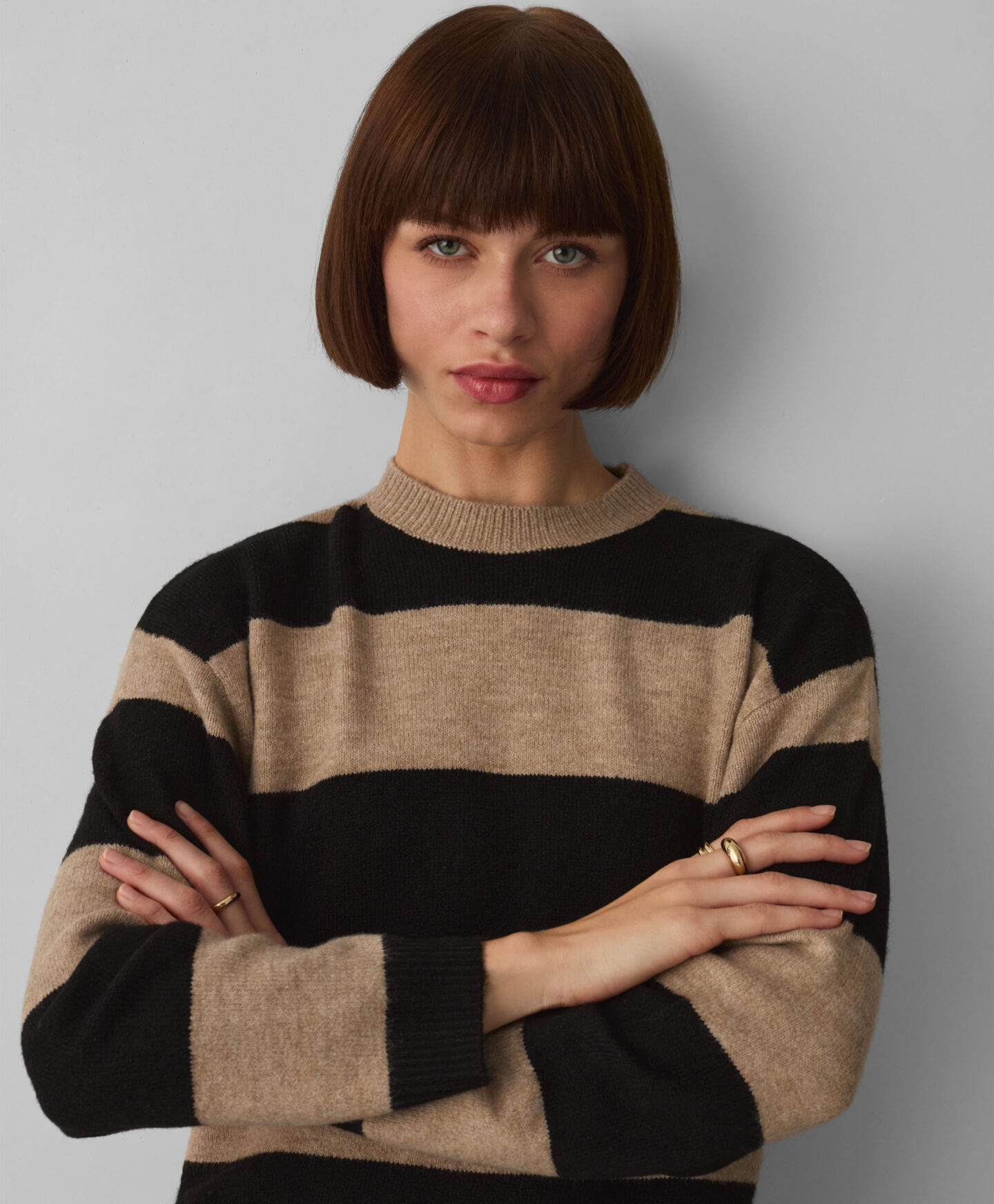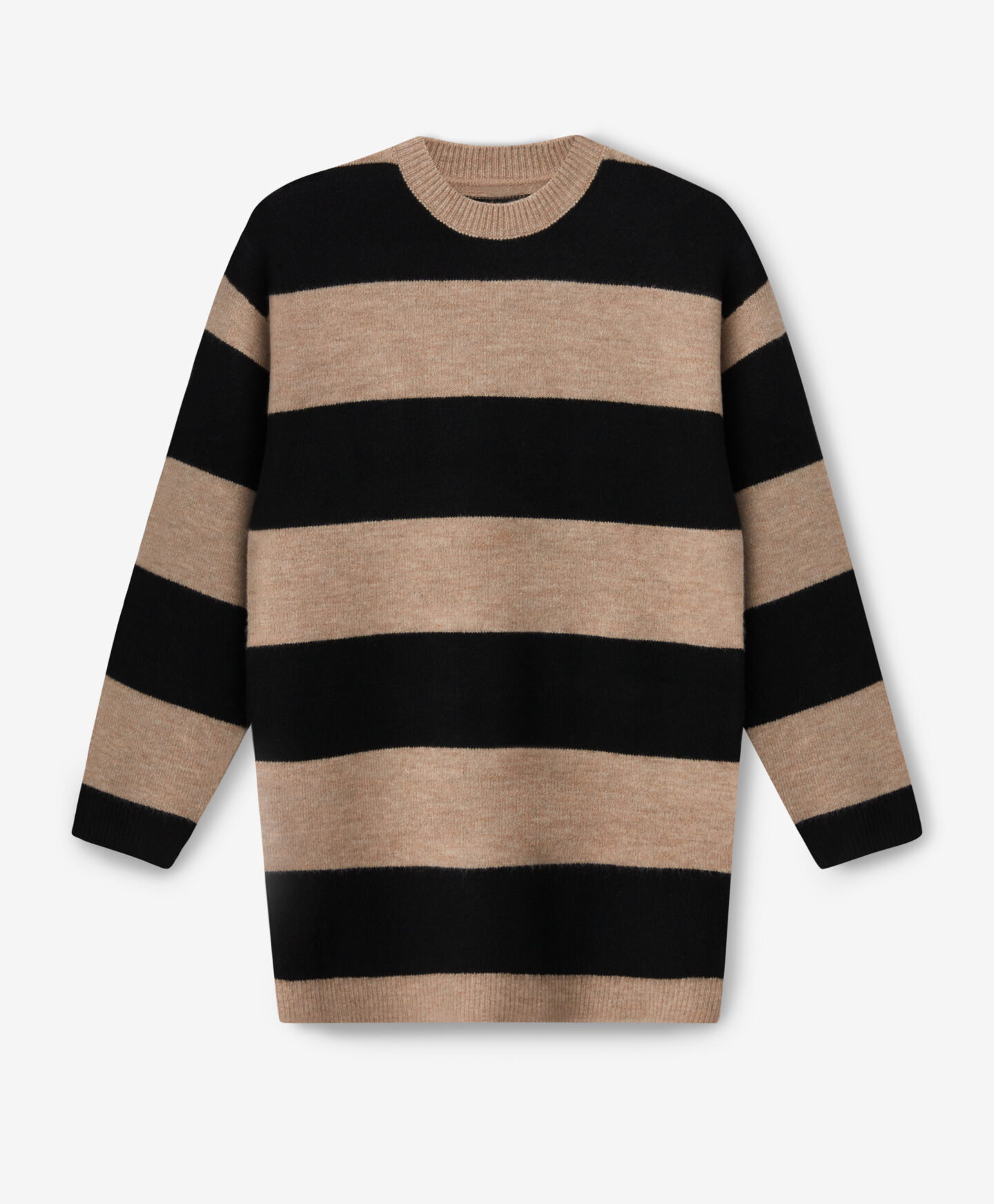 Tunika damska w paski doskonale uzupełni Twoją jesienną garderobę. Jest milutka, ciepła i stylowa. Świetnie będzie się prezentowała z legginsami lub grubszymi rajstopami. Uzupełniona o kozaki lub botki, stworzy strój doskonały na spacery, do biura lub spotkania ze znajomymi w czasie wolnym.