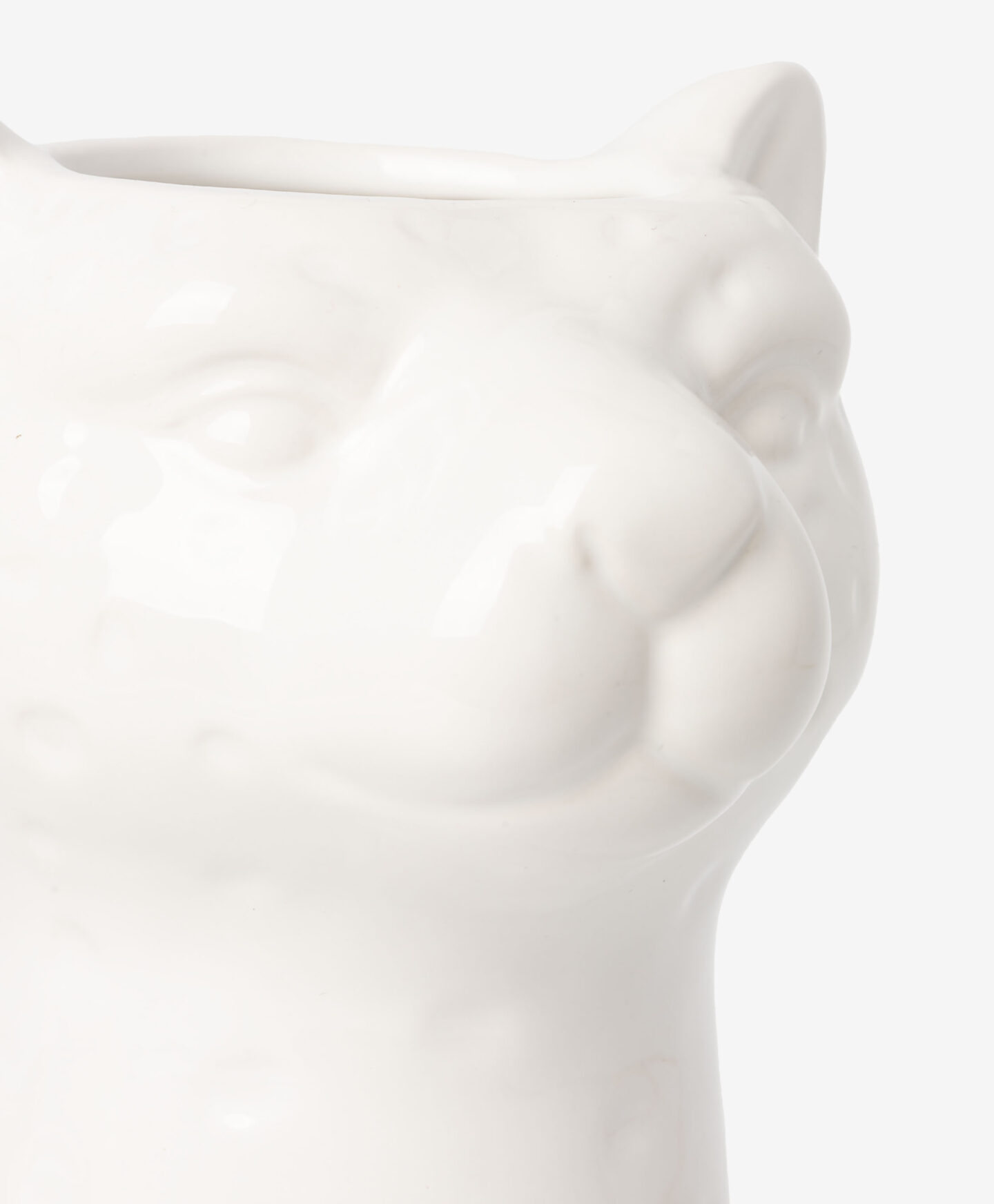 Wazon gepard to oryginalny i wyrazisty element dekoracyjny. Idealnie wpasuje się w nowoczesne wnętrza lub te inspirowane naturą, dodając im charakteru. Kwiaty umieszczone w wazonie zyskają zupełnie innego wyrazu, stając się częścią oryginalnej scenerii tropikalnego lasu.