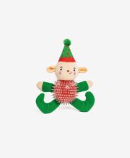 Zabawka dla psa elf łączy miękkie pluszowe fragmenty z twardszymi elementami, co daje różnorodność doznań podczas zabawy. Kolorowe detale i radosny charakter od razu kojarzą się ze świątecznym nastrojem.