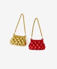 Zawieszki choinkowe w kształcie torebki wniosą na drzewko odrobinę blasku i elegancji. W zestawie znajdują się dwie miniaturowe torebki – złota i czerwona – każda z dekoracyjnym łańcuszkiem w roli uchwytu. Ich błyszcząca, pikowana faktura pięknie odbija światło lampek, tworząc efektowną ozdobę, która przełamuje tradycyjne formy bombek. To oryginalny akcent, który spodoba się miłośnikom stylowych detali.