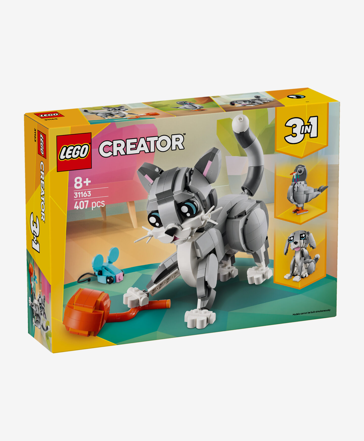 LEGO® Creator 3 w 1 Kot to zestaw, który inspiruje do twórczej zabawy. Z klocków można zbudować figlarnego kota z myszką, gołębia lub psa. Dzięki różnorodnym możliwościom konstrukcji dziecko ma okazję rozwijać wyobraźnię i za każdym razem tworzyć inne historie.